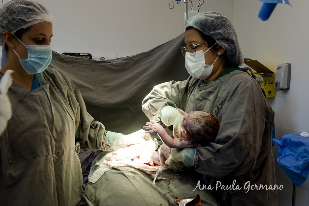 Ela agendou a cesárea e 1 semana antes da data, sentindo algumas dores, se dirigiu à maternidade e, após a realização de exames houves algumas alterações e foi recomendado que o parto acontecesse naquele mesmo dia e assim foi.