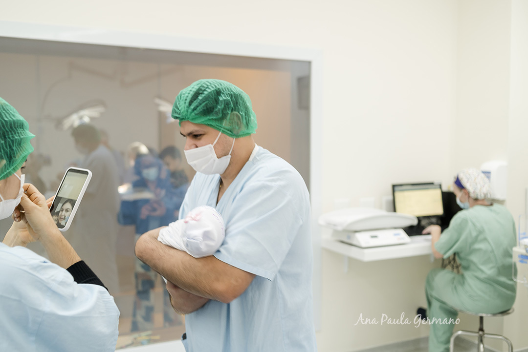 Tudo deu certo, no dia marcado, nós conseguimos entrar, pois não havia mais nenhum tipo de restrição, sua irmã, que é médica, também pôde entrar para acompanhar o parto e sua mãe e seu primeiro filho, que foi promovido a irmão mais velho, assistiu da janela e foi tudo lindo!
