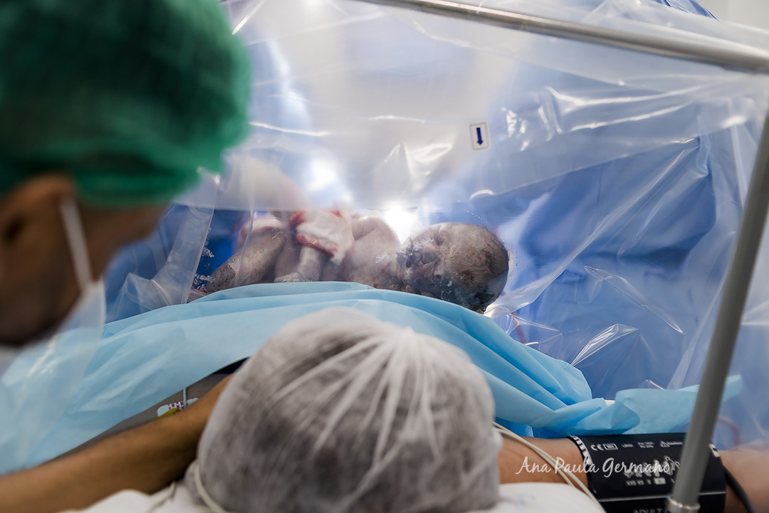 Com 36 semanas, ela foi internada para exames pois, com seu histórico de gestação, ela precisava ser monitorada. Assim, o parto foi agendado para uns dias depois, a fim de garantir a saúde dos dois e assim foi feito.