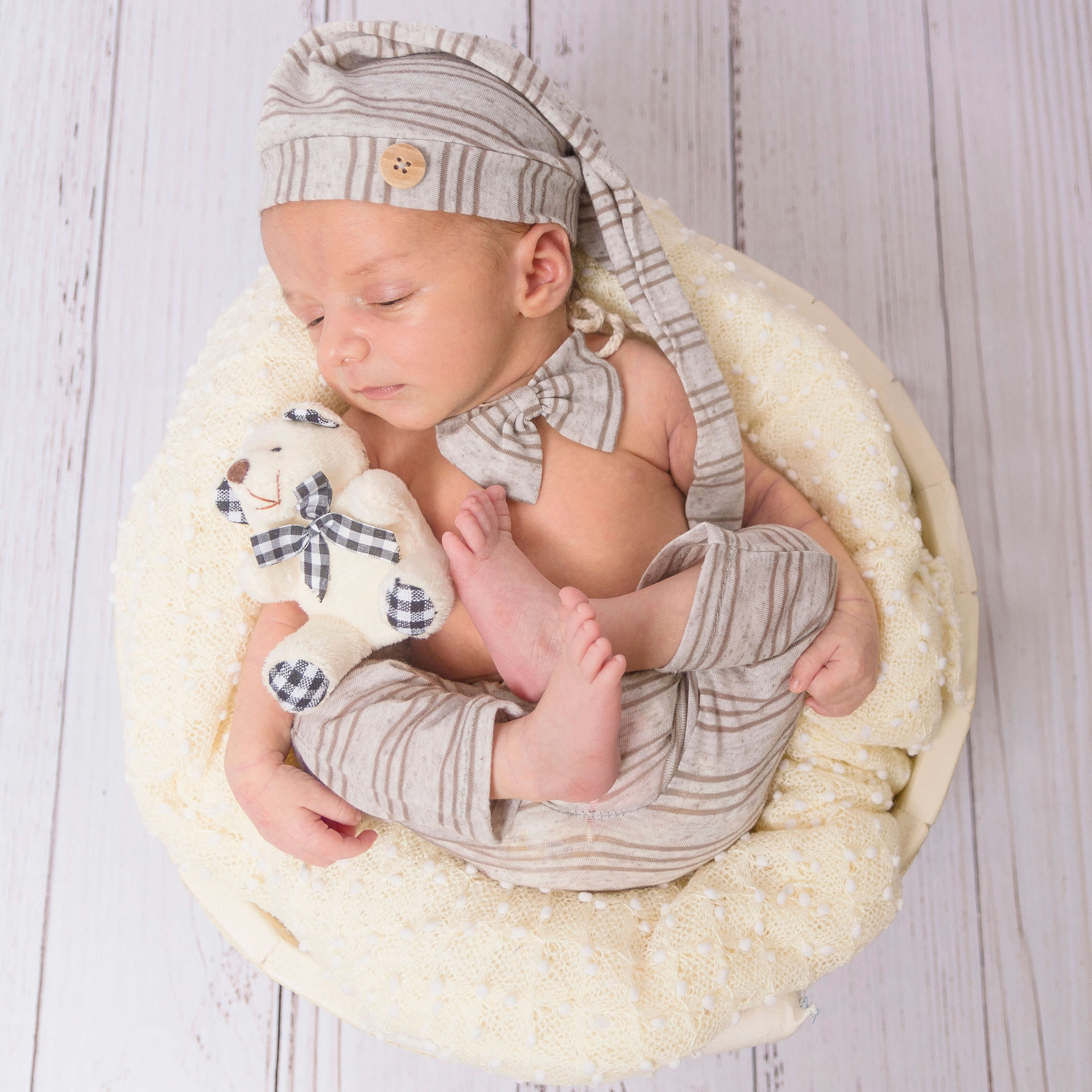 As fotos são feitas com o bebê dormindo, peladinho ou embrulhadinho no wrap (um tecido especifico que tem elasticidade para envolver e deixar o bebê apertadinho sem, no entanto, prender sua circulação ou marcar sua pele). Também são usados acessórios especiais como headbands, gorros e roupinhas especialmente criadas para esse tipo de ensaio.