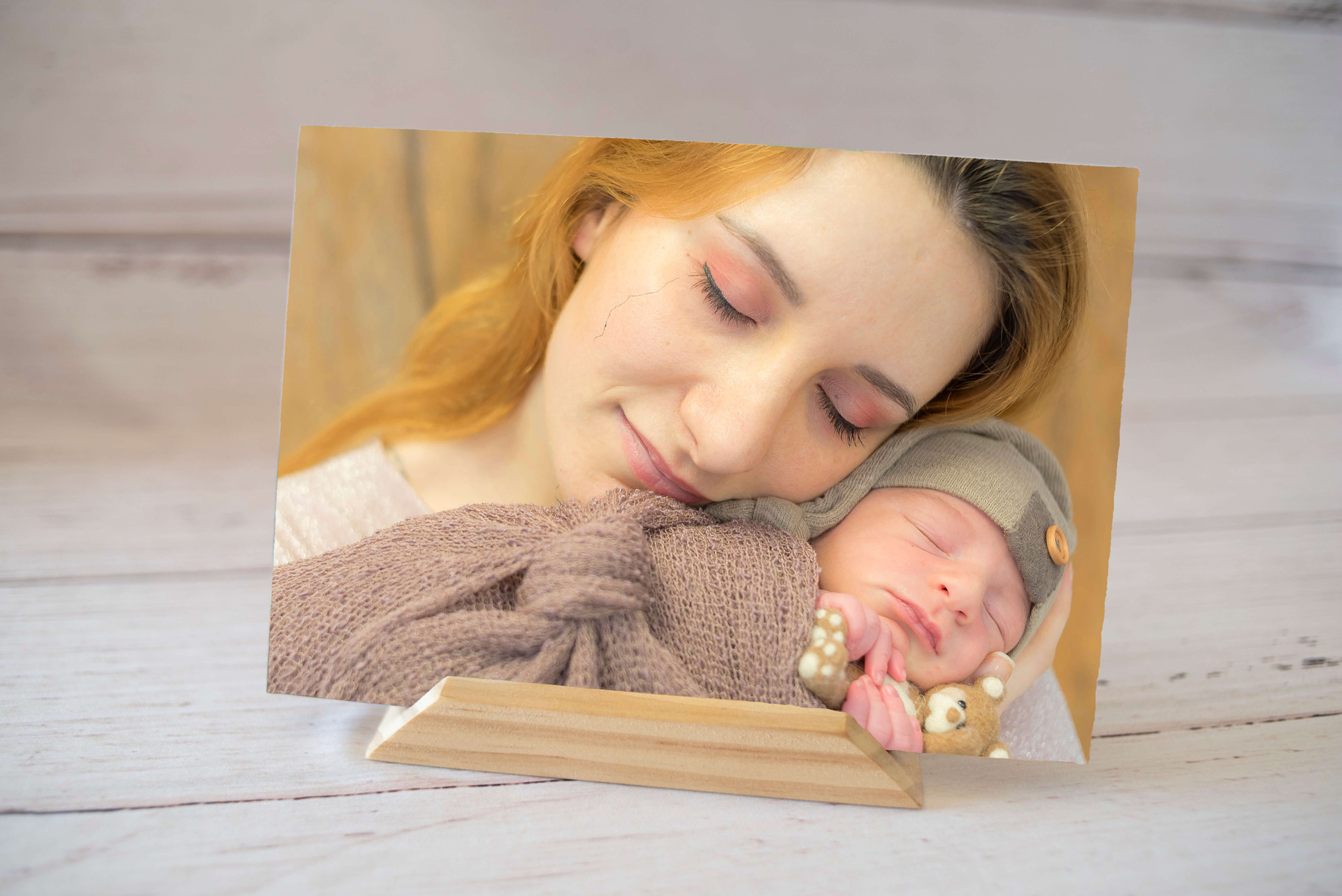 - Porta-retrato tamanho 15x21cm confeccionado em madeira, com 1 foto a sua escolha