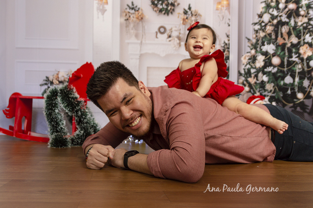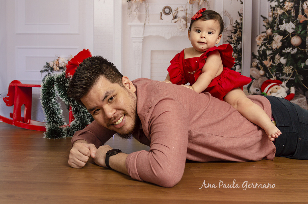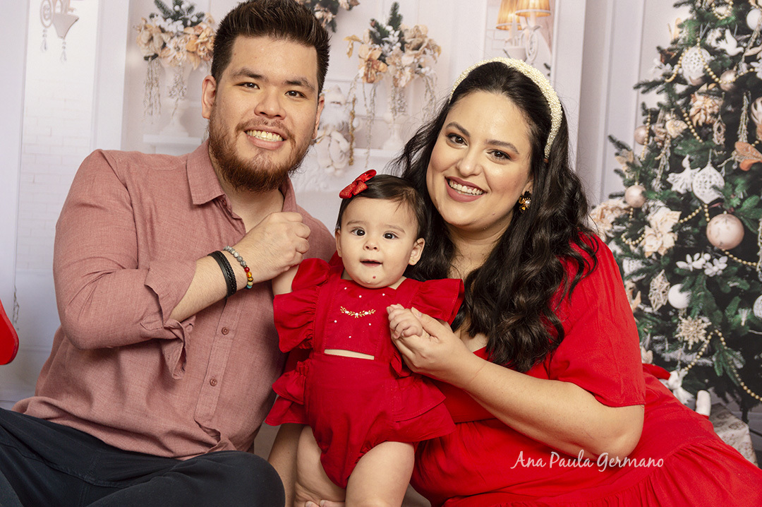 O ensaio de 8 meses da Carol foi o ensaio de Natal com a família toda!