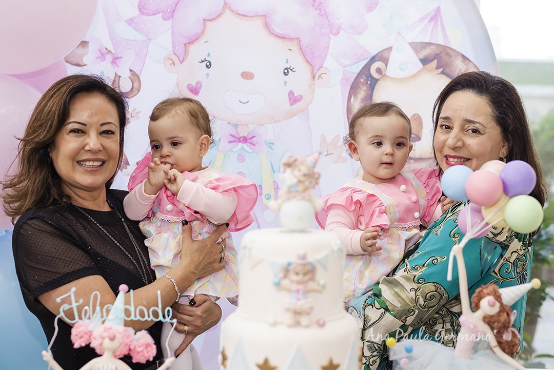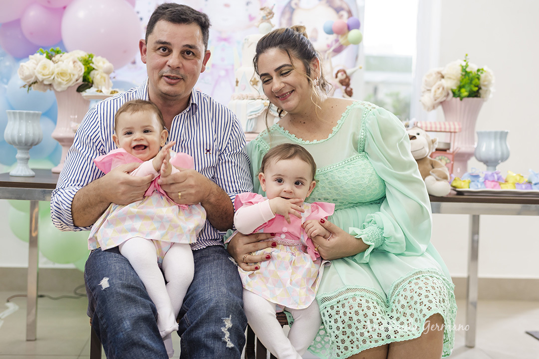 E depois de realizar o ensaio gestante, o chá de bebê, o registro do nascimento, o ensaio newborn e o acompanhamento mensal dessas princesas, fechamos esse "Ano de Ouro" com o aniversário de 1 ano dessas duas riquezas, princesas linda que amamos e já sentimos saudades enormes.