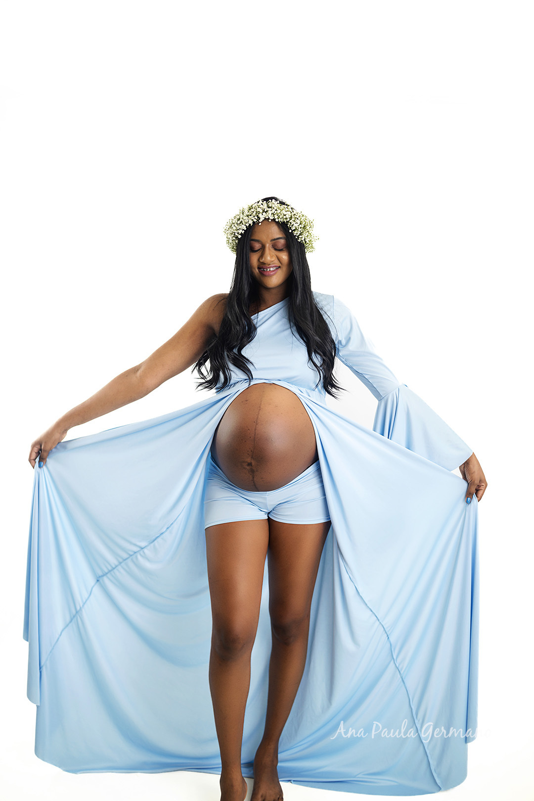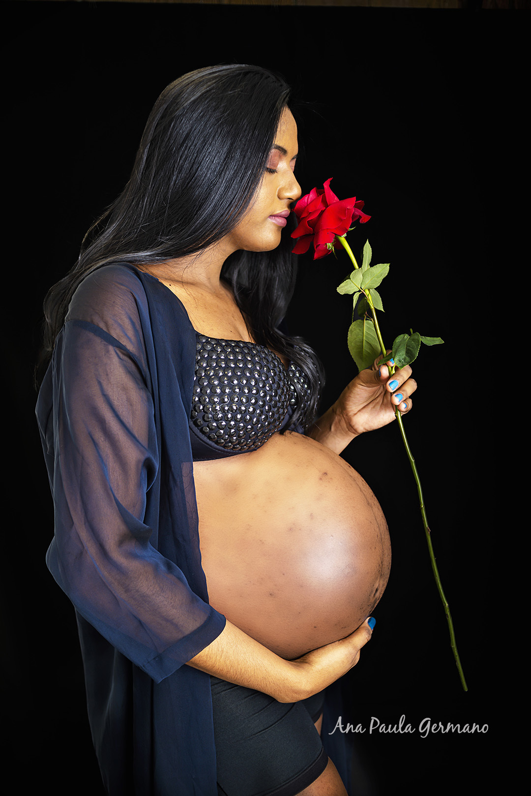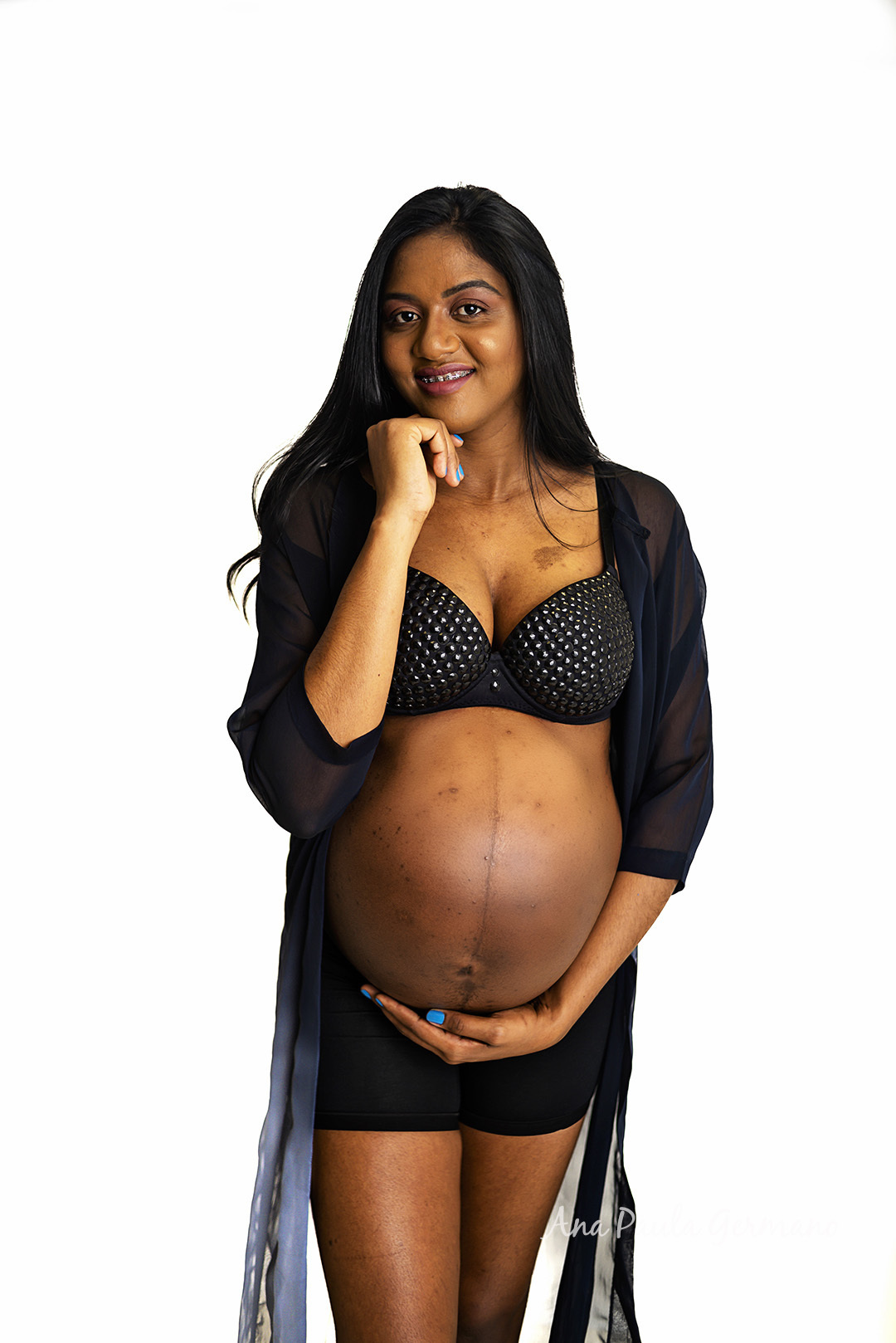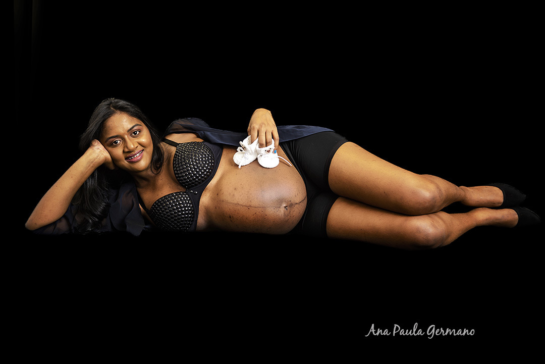 A Mõnica está à espera do Theodoro e tudo está indo muito bem na gestação, então ela foi até o estúdio para o seu ensaio.