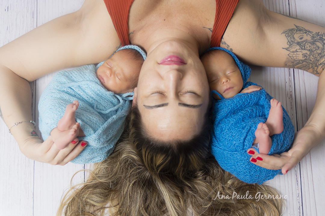 Os gêmeos Matheus e Miguel nasceram e a mamãe Carolina, os levou ao nosso estúdio para as fotos do Ensaio Newborn.