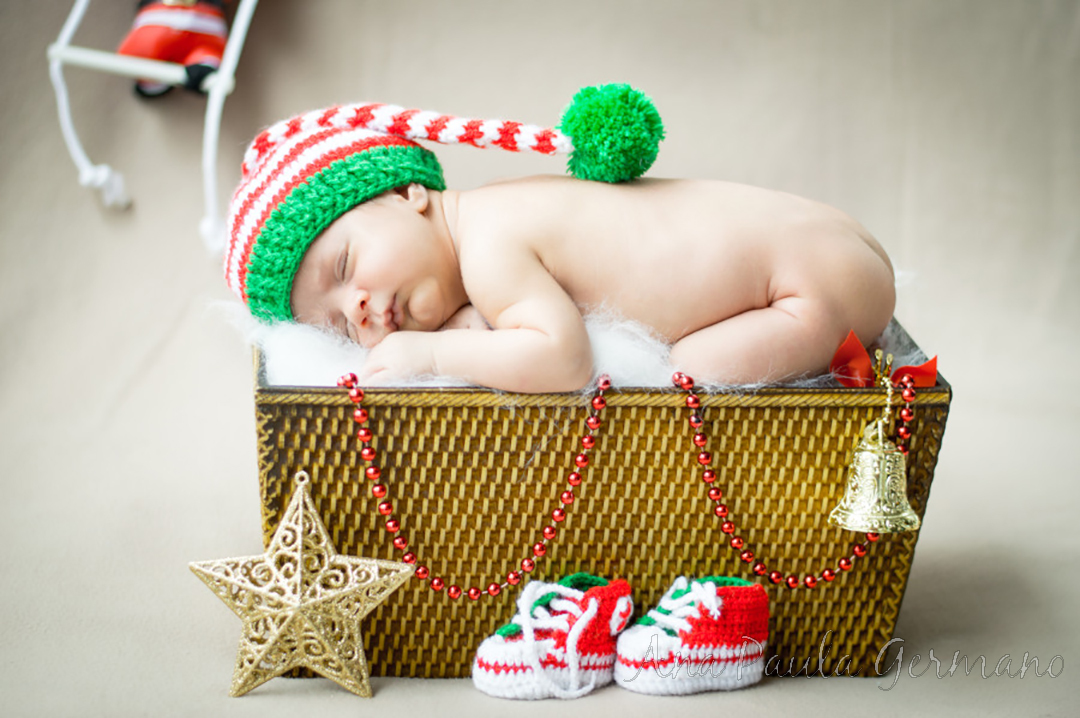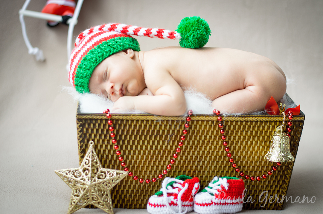 Em clima de Natal, fotografamos o lindo Guilherme, de 15 dias.