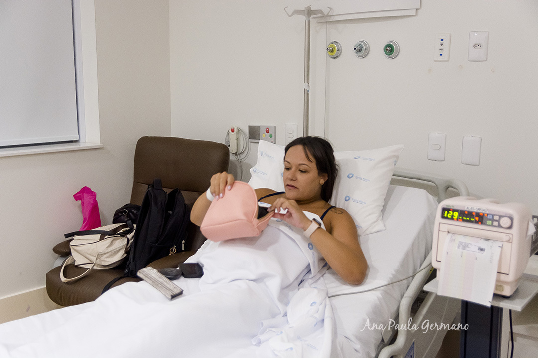 Nós chegamos e registramos tudo, desde o quarto até os primeiros cuidados da Duda.
