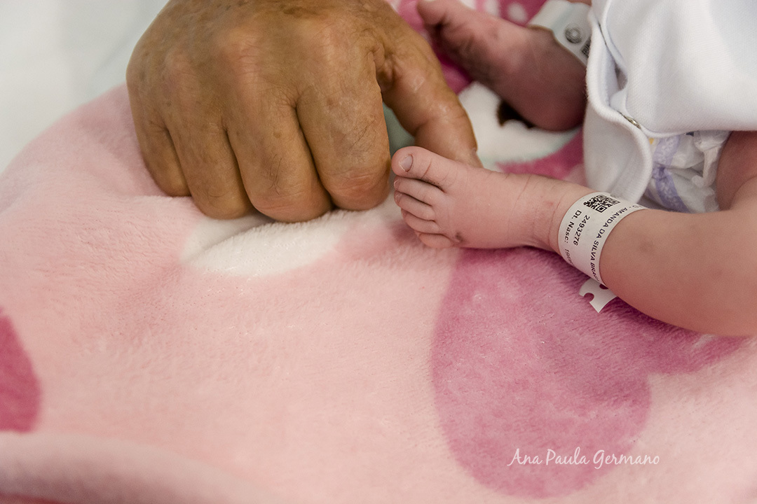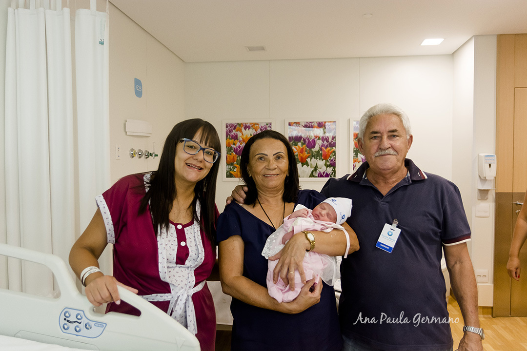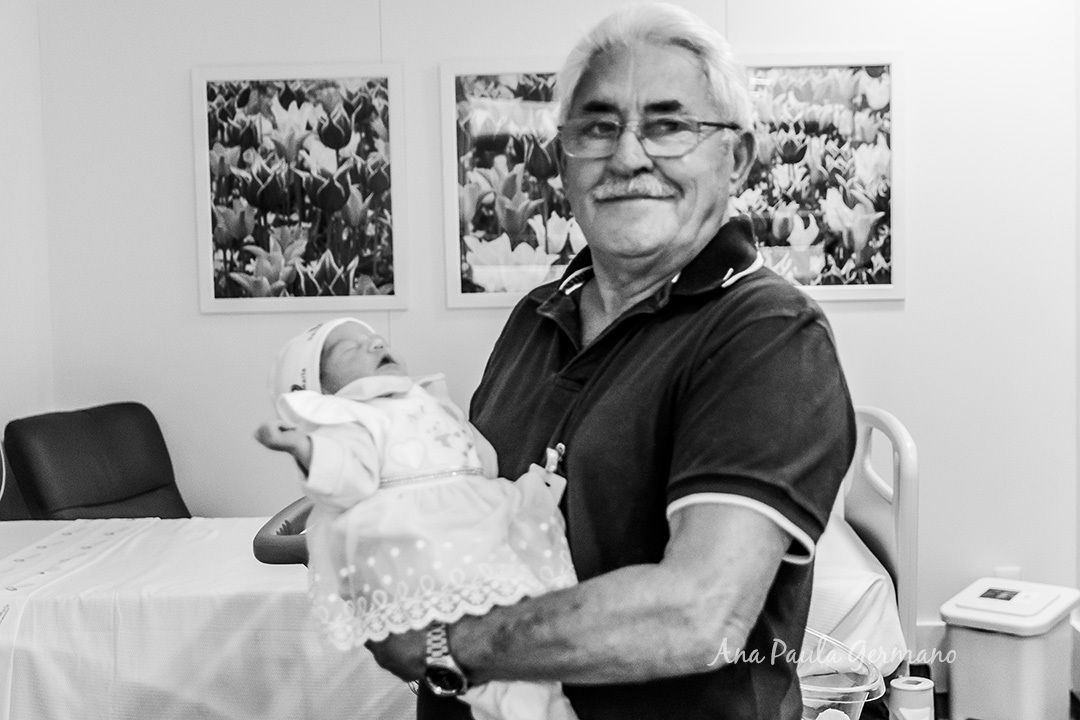 Após o nascimento da Maria Eduarda, ela recebeu a visita dos vovôs, ainda na maternidade, e nós fomos lá registrar esse momento.