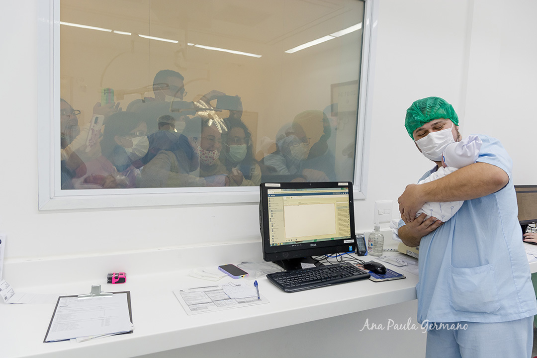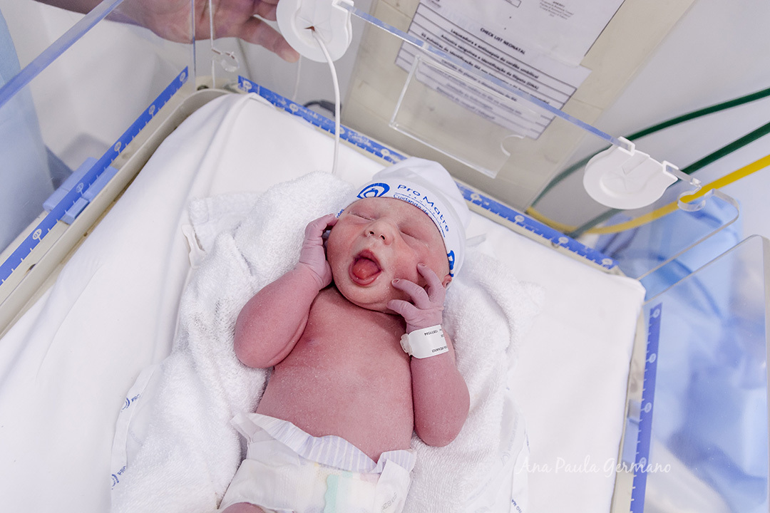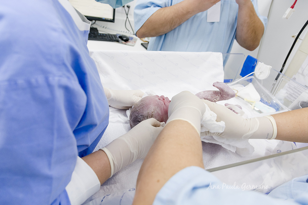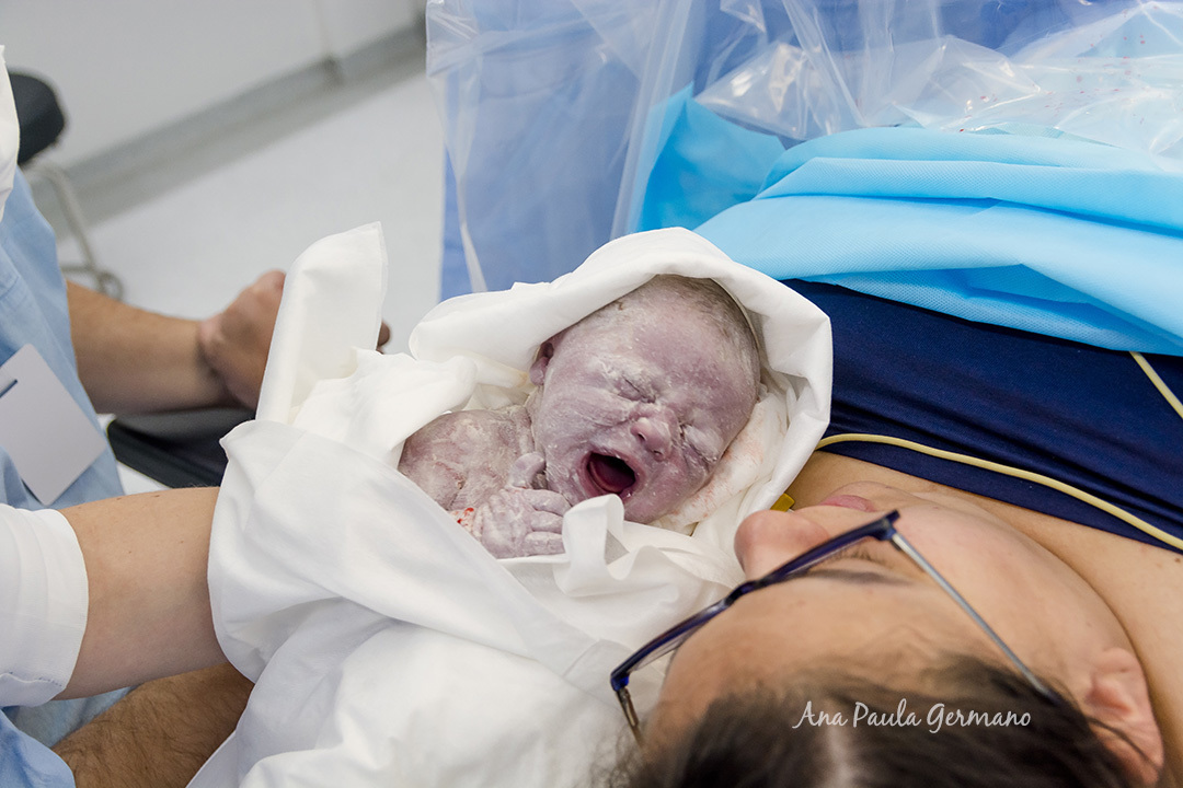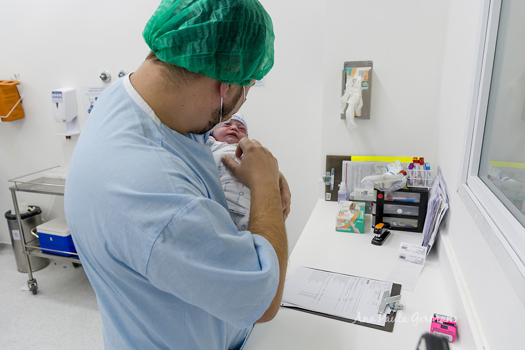 Ele desejava o parto normal, mas, na indução, o trabalho de parto não evoluiu, então partiu para a cesárea para conhecer a pequena e tudo ficou bem, ela nasceu lindamente, em uma cesárea muito respeitosa!