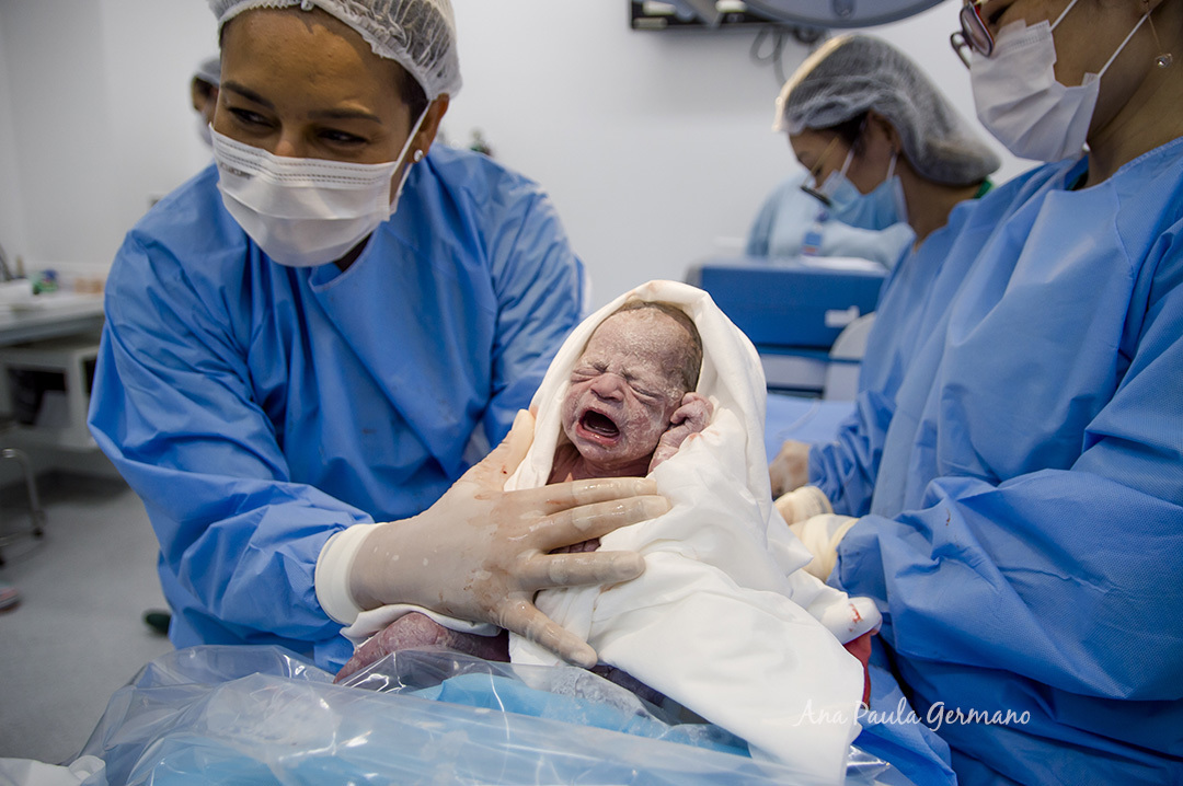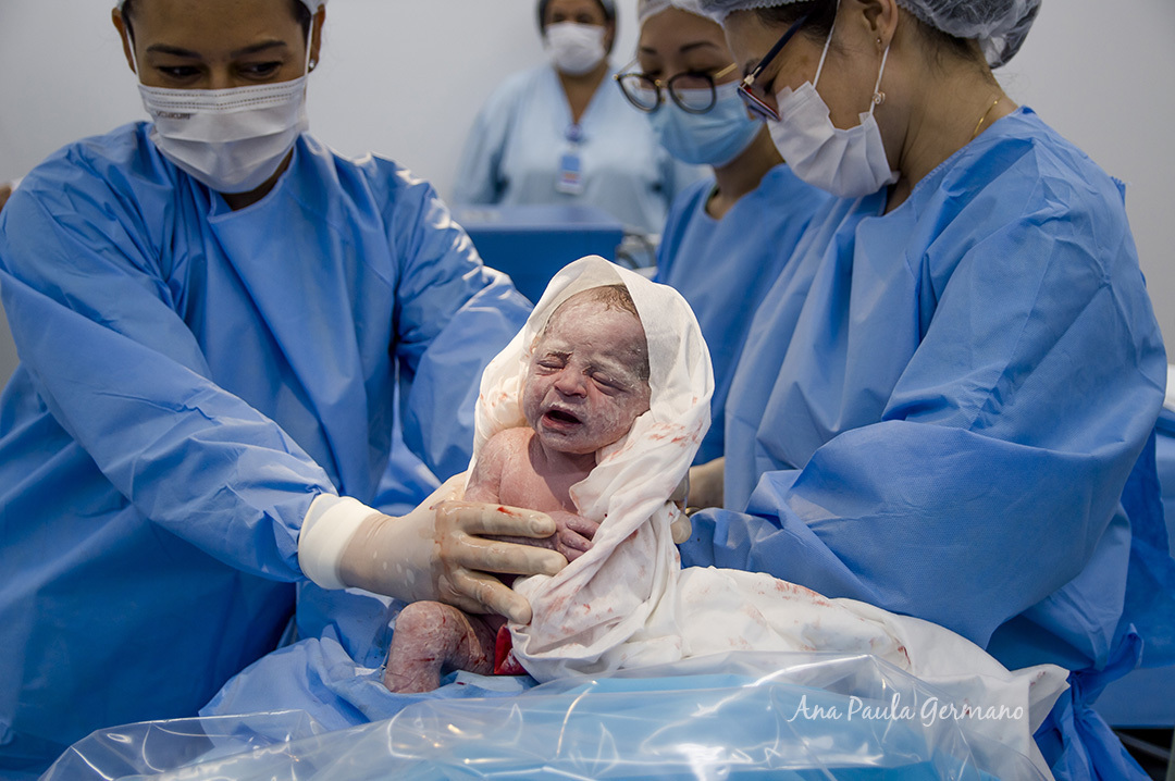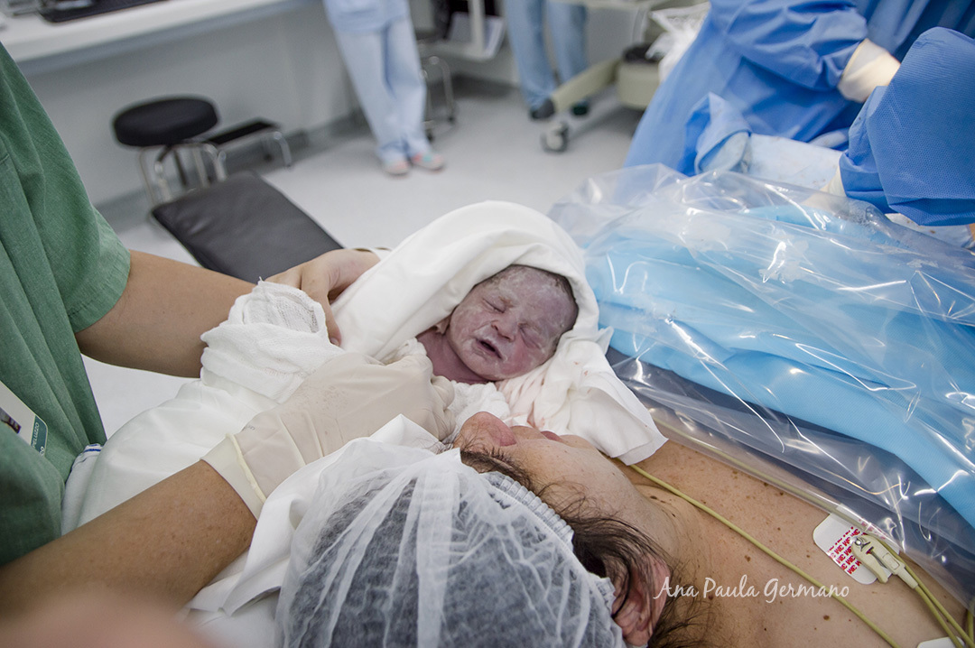 A primeira a nascer foi a Manu e ela nasceu a plenos pulmões, linda! A Rafa nasceu 2 minutos depois, menor, mas também a plenos pulmões. Foi um parto lindo e muito respeitoso, elas permaneceram junto com a mamãe por longo período de tempo, foi tudo com muita calma e tranquilidade, já as duas estava bem.