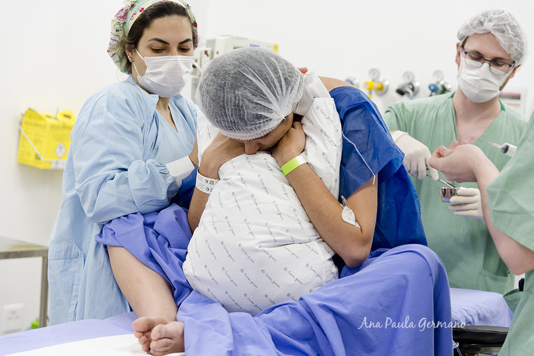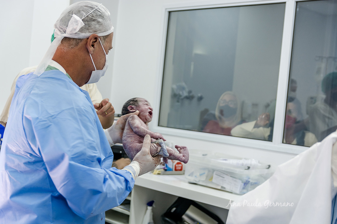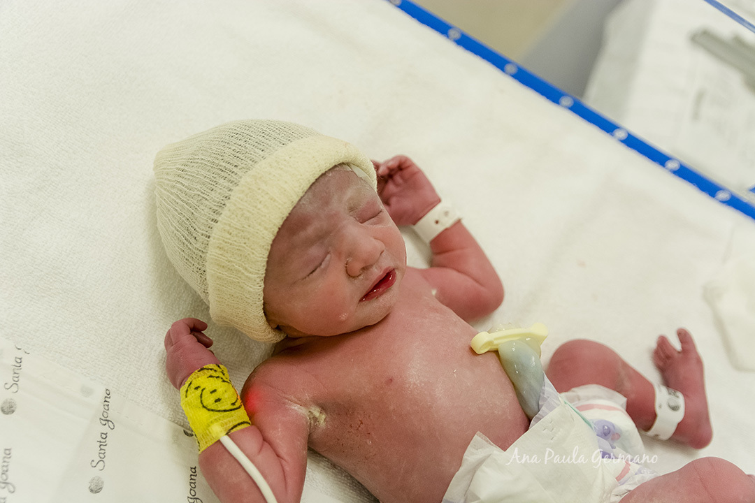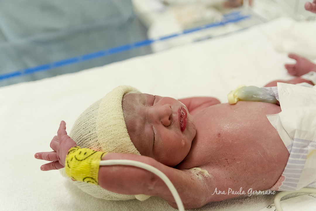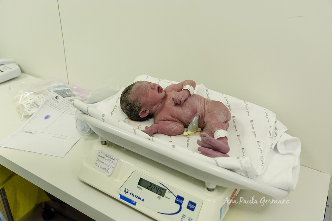 Chegando lá, ela estava em pleno trabalho de parto, já com 4 dedos de dilatação. O nascimento aconteceria, então nos preparamos, juntamente com o médico e com a equipe e registramos o nascimento da Melissa. E ela veio, plena, linda chorando a plenos pulmões (adoramos quando o bebê chora muito)!