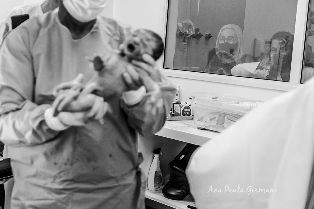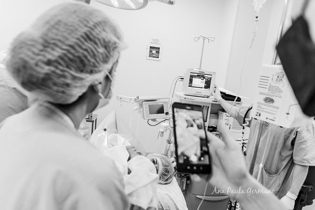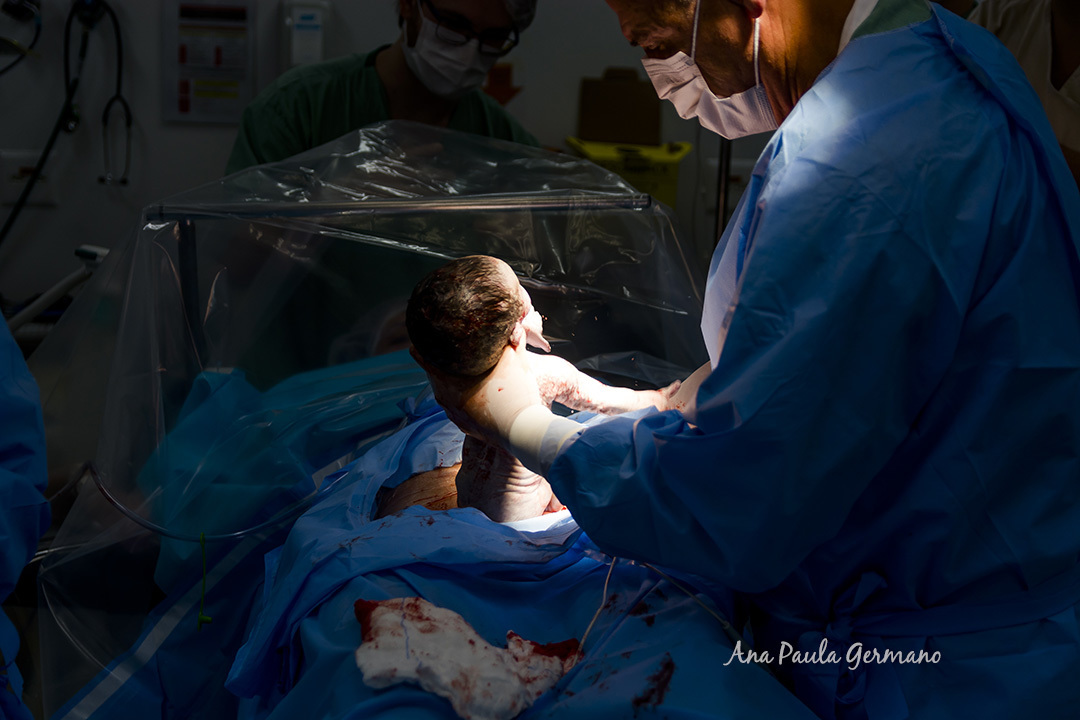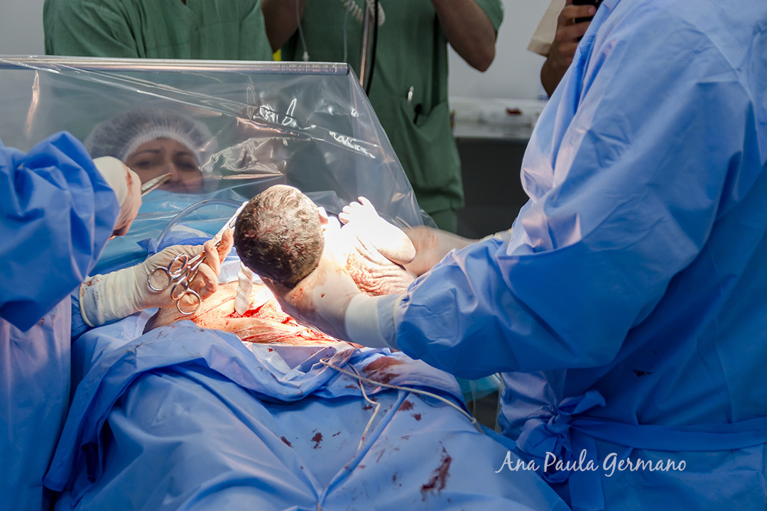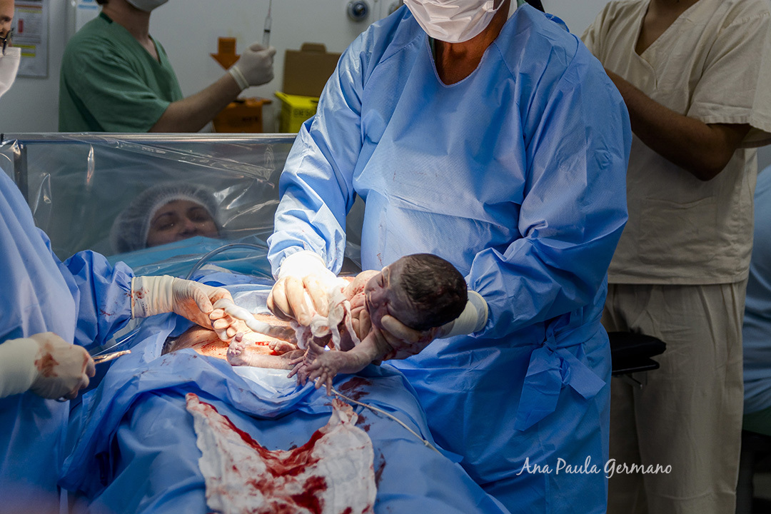 Chegando lá, ela estava em pleno trabalho de parto, já com 4 dedos de dilatação. O nascimento aconteceria, então nos preparamos, juntamente com o médico e com a equipe e registramos o nascimento da Melissa. E ela veio, plena, linda chorando a plenos pulmões (adoramos quando o bebê chora muito)!