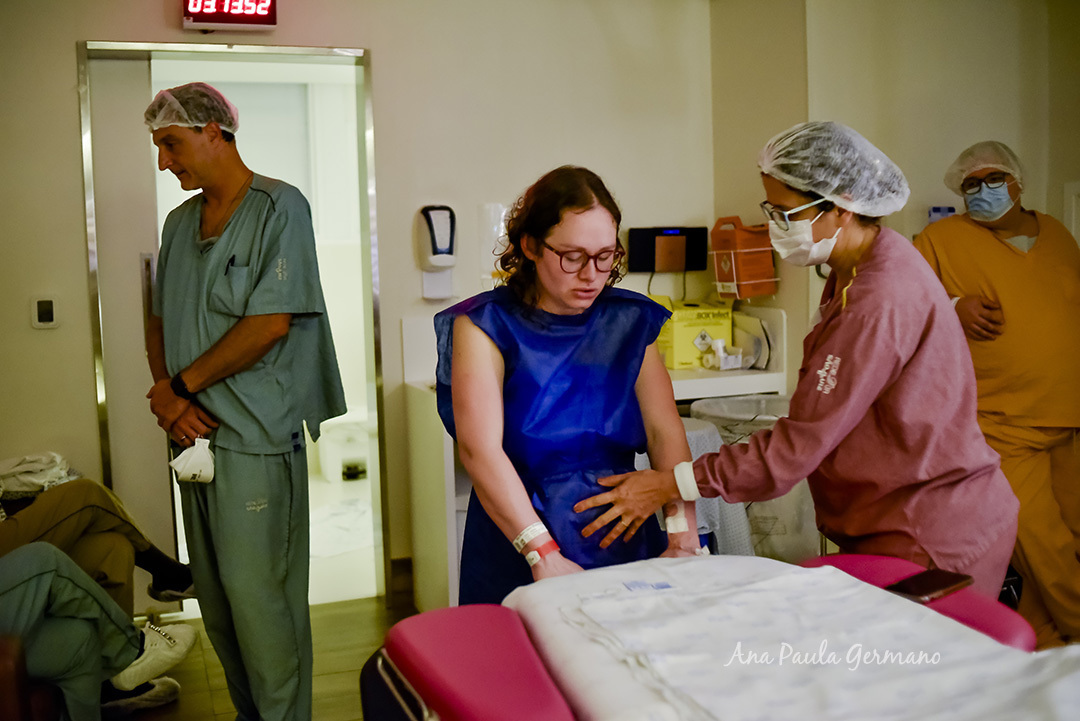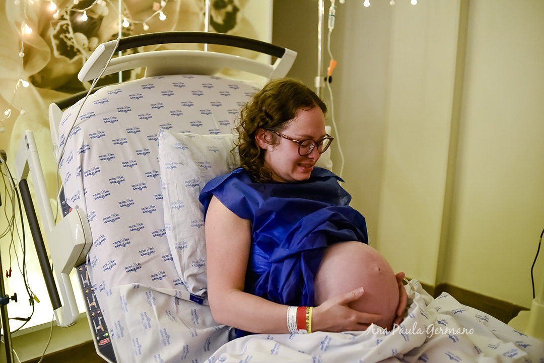 Em decisão conjunta com sua médica, ela foi internada para indução do parto. A indução se iniciaria a noite, mas não foi necessário pois ao ser examinada, ela já estava com 6 dedos de dilatação e já se encontrava em trabalho de parto.