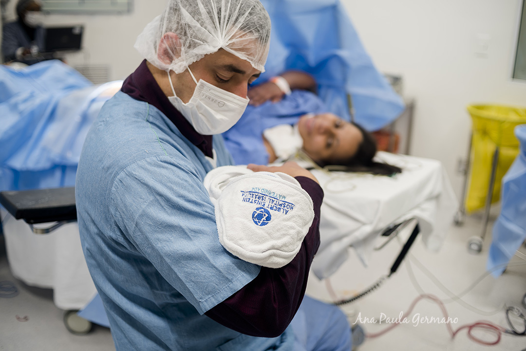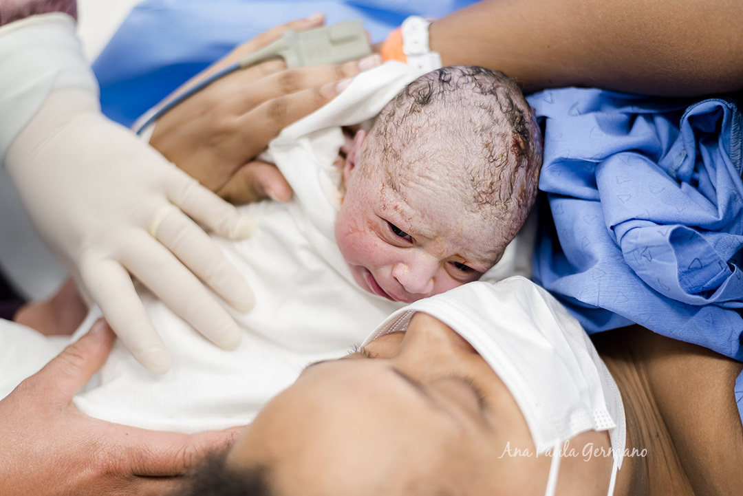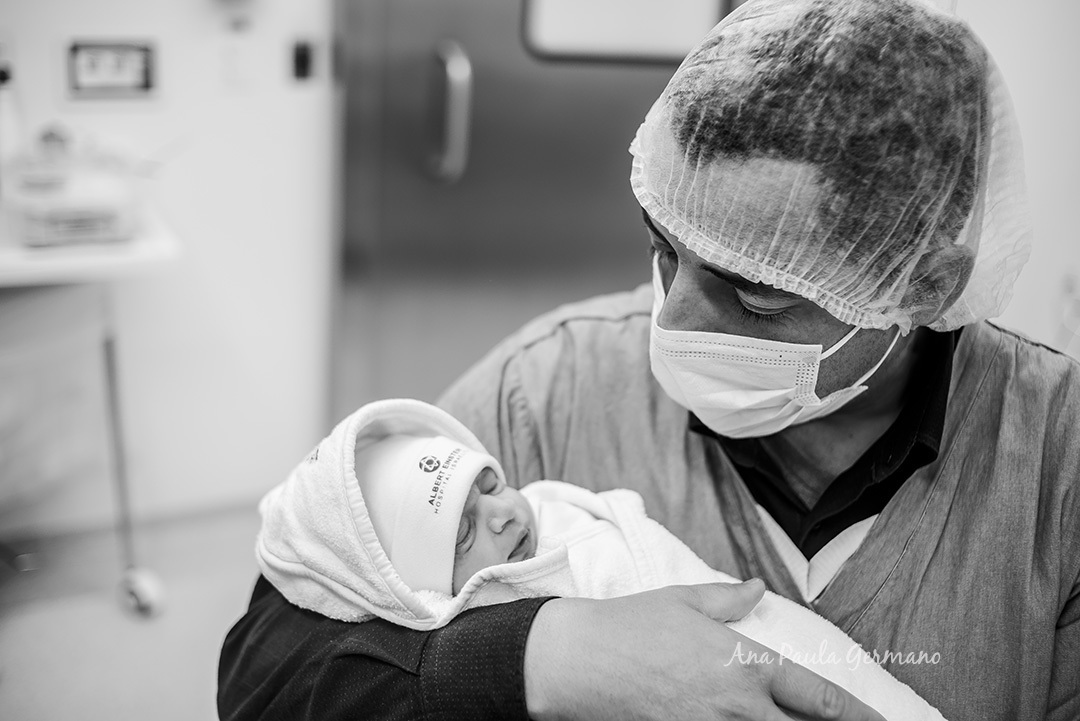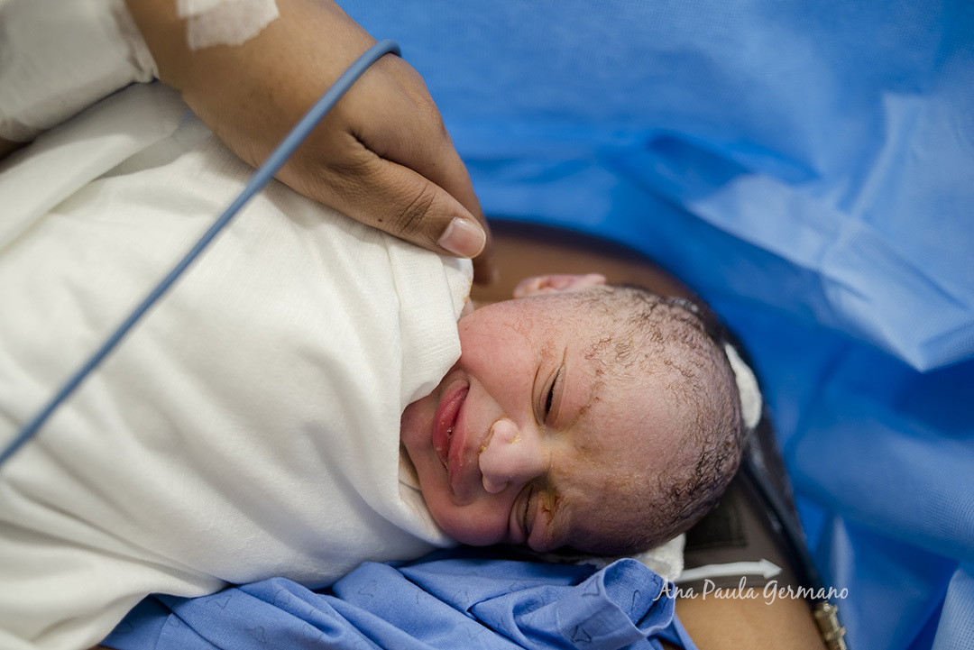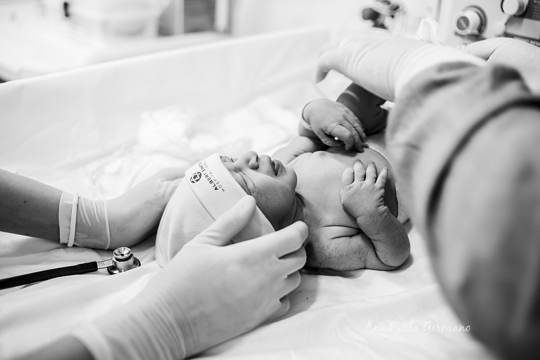 Tudo corria bem. Ela foi analgesiada e, após a analgesia os batimentos do Nicolas começaram ca cair, então foi encaminhada para a cesárea de emergência.