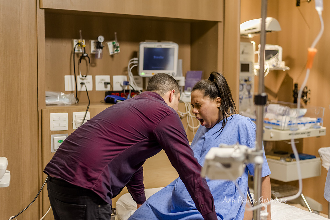 Fomos acionados, pois ela estava com muitas dores. Chegamos na maternidade e iniciamos o acompanhamento do trabalho de parto.