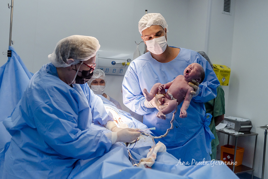 Ela entrou em trabalho de parto e nós fomos para a maternidade para registrar o nascimento do príncipe. Ele estava sentado, então os médicos indicaram a cesárea.