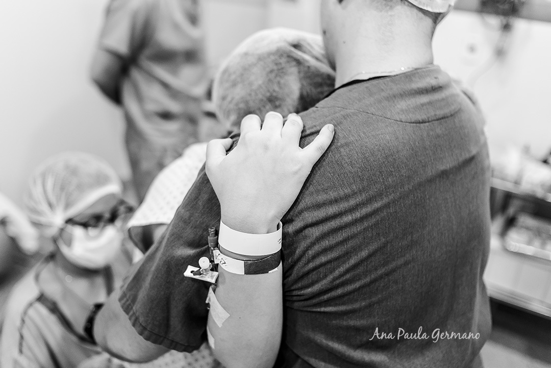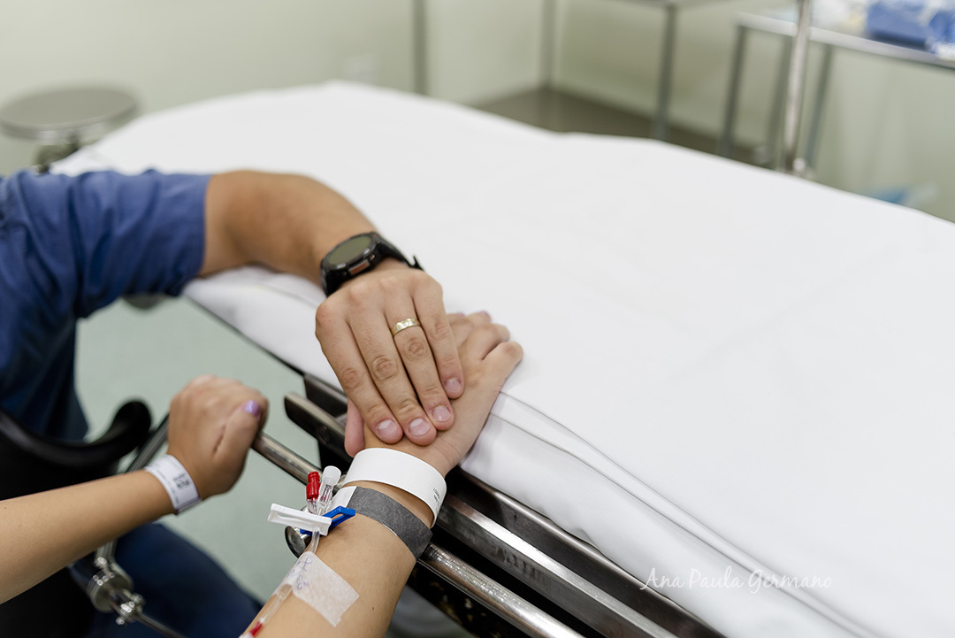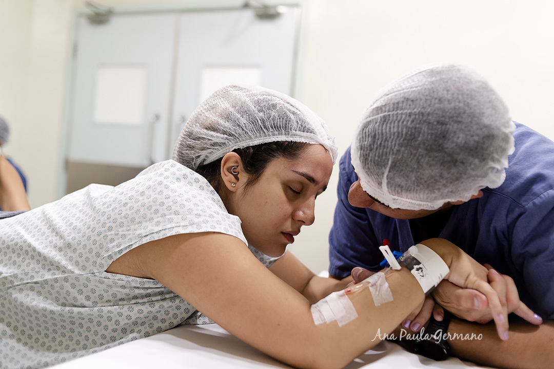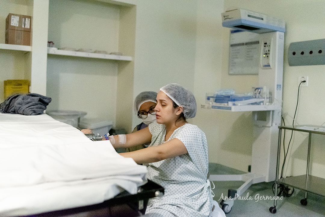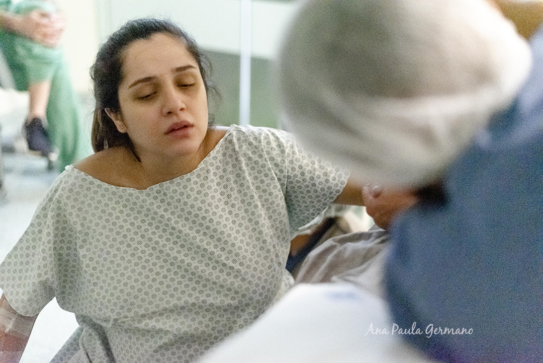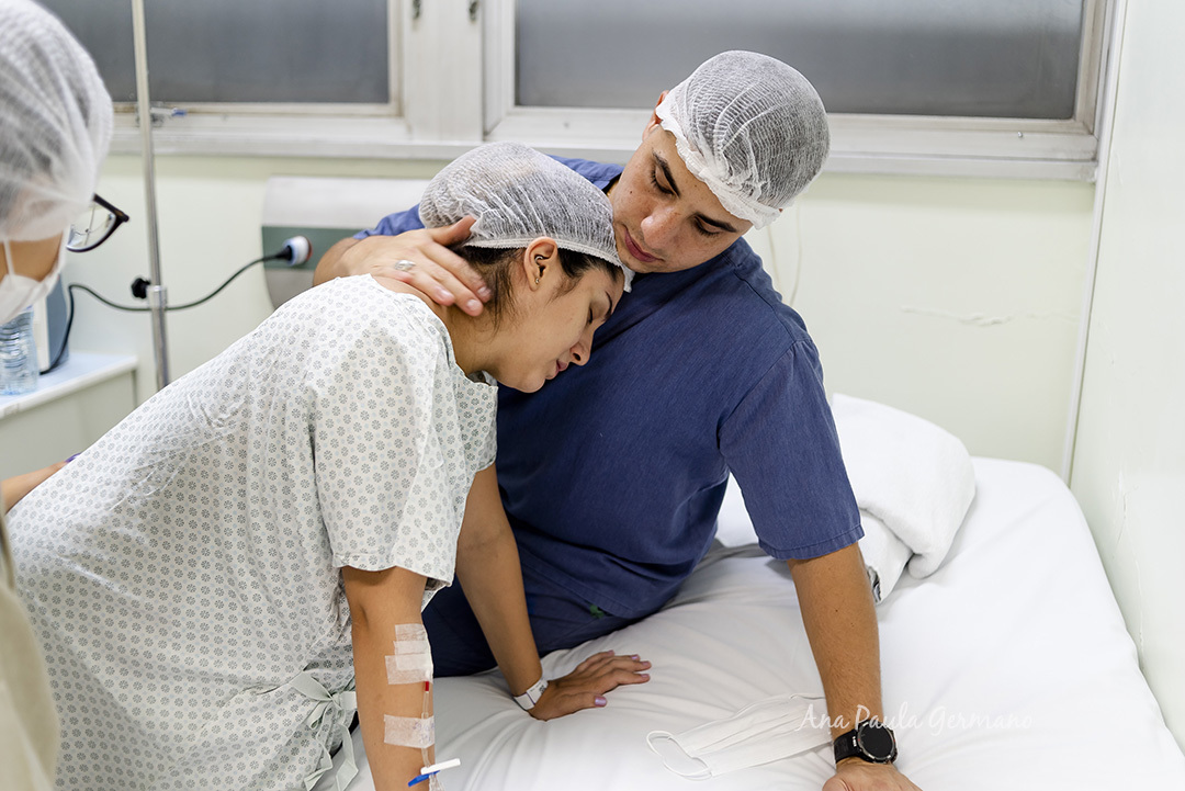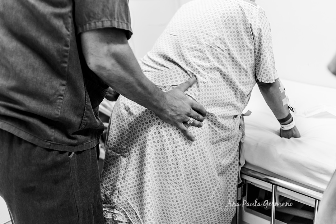 Não foi o caso da Jade, o líquido estava claro e ela foi tranquila para a maternidade juntamente com a doula. Nós ainda esperamos mais um pouco para nos dirigir ao encontro dela, pois vamos quando o trabalho de parto está ativo, por volta de 5 a 6 dedos de dilatação, para não atrapalhar o processo inicial do trabalho de parto, para não gerar grandes ansiedade na mãe e ainda conseguimos acopanhar todos os detalhes do trabalho de parto propriamente dito. Ao chegar na maternidade, a Jade foi avaliada pela equipe e foi constatado 5 cm de dilatação. Com isso, ela nos avisou e aí sim, fomos para lá, era noite e o trânsito estava mais tranquilo.