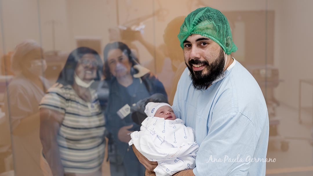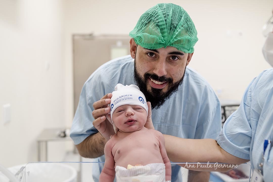 Ela almejava o parto normal e estava se preparando para isso. Ela então, internou para a indução do parto para estimular o trabalho de parto, no entanto, não evoluiu e os médicos acharam melhor realizar a cesárea, então, nós saímos correndo e chegamos lá rapidinho.