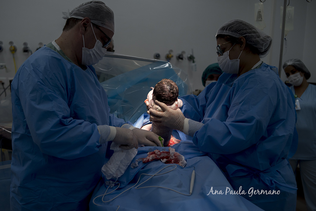 No entanto, o seu trabalho de parto não evoluiu e então acabou acontecendo a cesárea.
