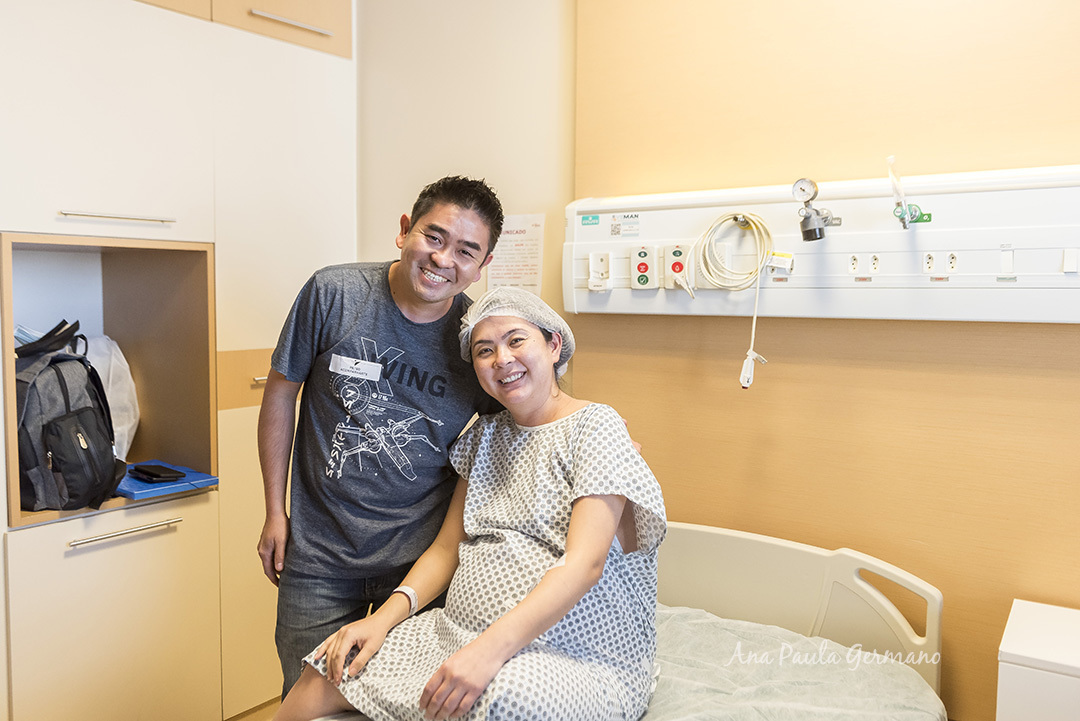 A cesárea foi agendada e nós fomos para a maternidade para registrar tudo.