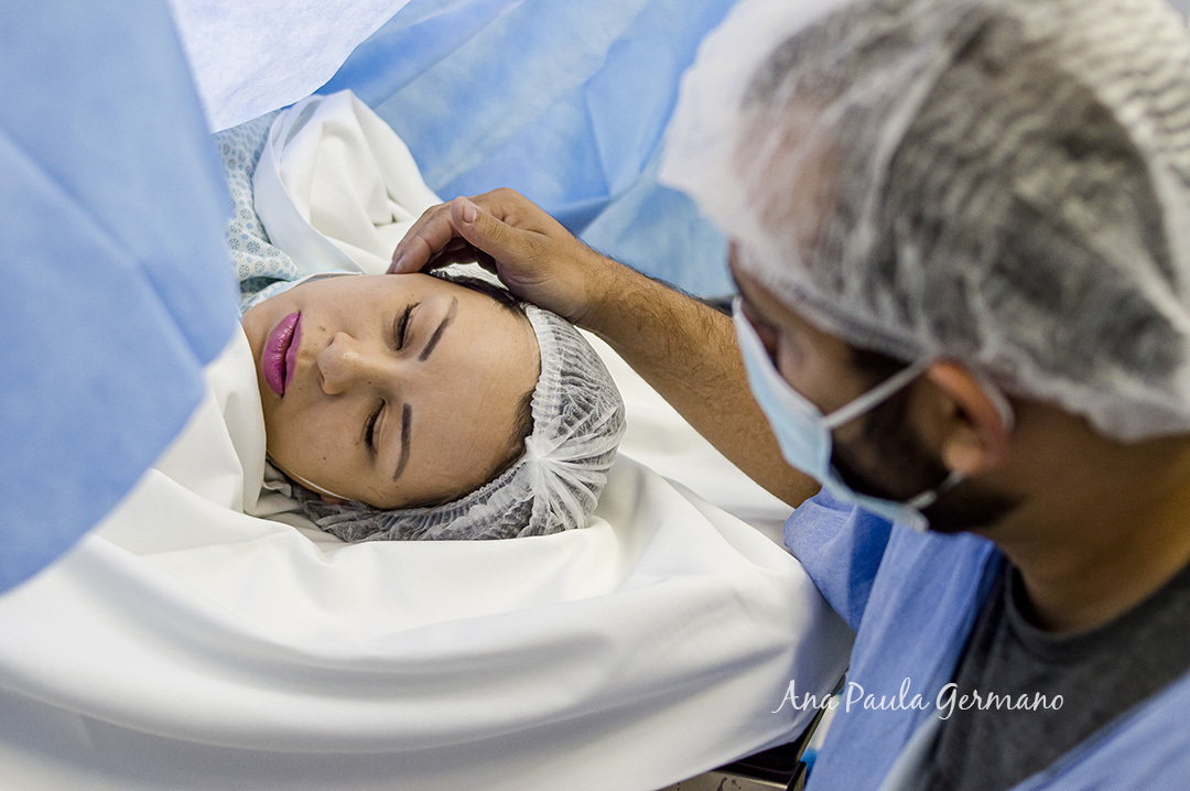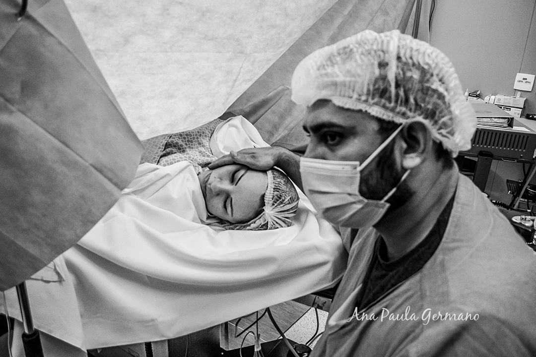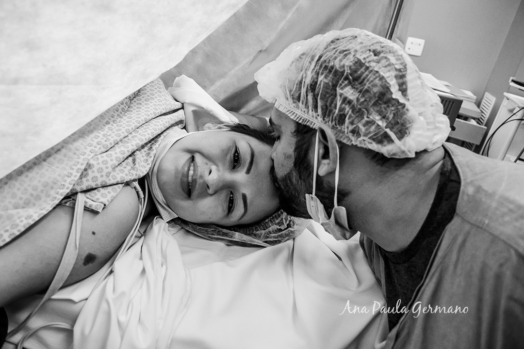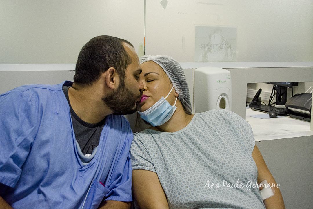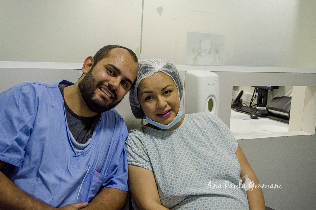 No momento de subir para o Centro Obstétrico, ela estava visivelmente ansiosa e o Fernando, seu esposo, a acompanhava em todo momento, dando o suporte que ela tanto precisava neste momento tão incrível e delicado ao mesmo tempo.