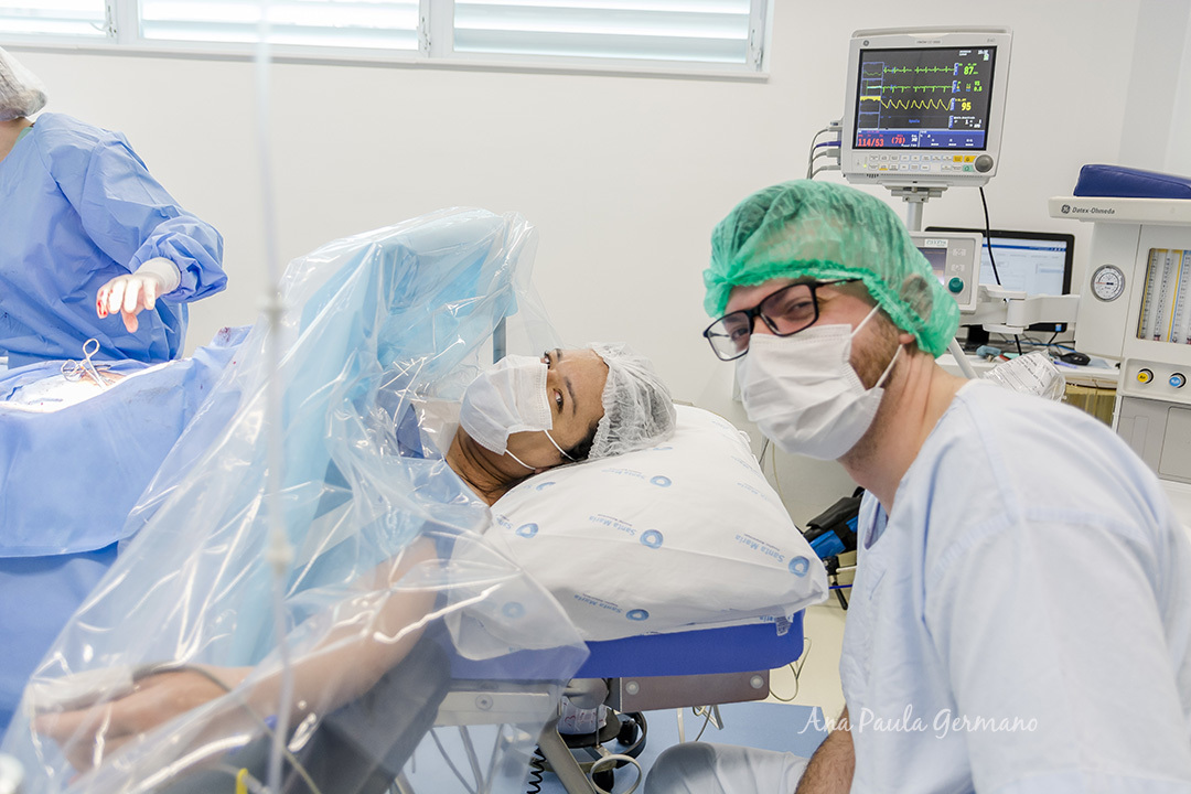 Á partir daí foi meio correria, pois eles acharam que ainda tinham mais algumas semanas, mas tudo pelo bem da pequena. Nos contrataram já no hospital e, como precisamos da autorização da maternidade para poder entrar e fazer o registro, no próprio dia do parto, nos dirigimos para lá, providenciamos e cuidamos de toda a burocracia e ficamos no aguardo da hora certa para o parto.