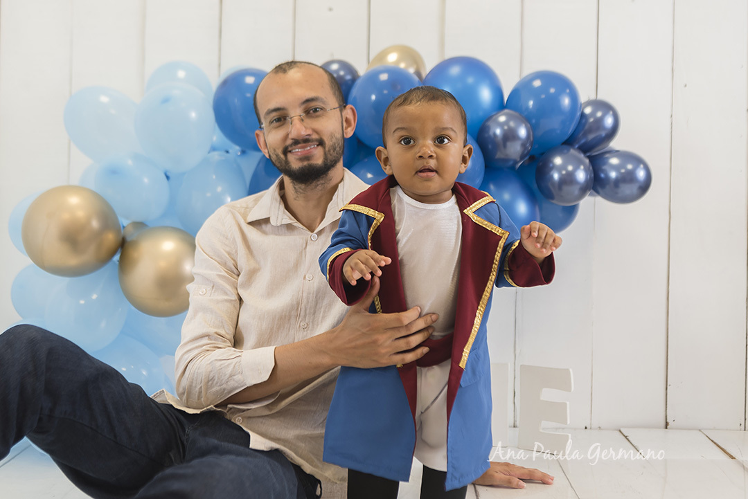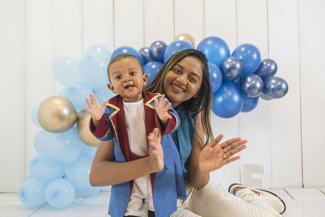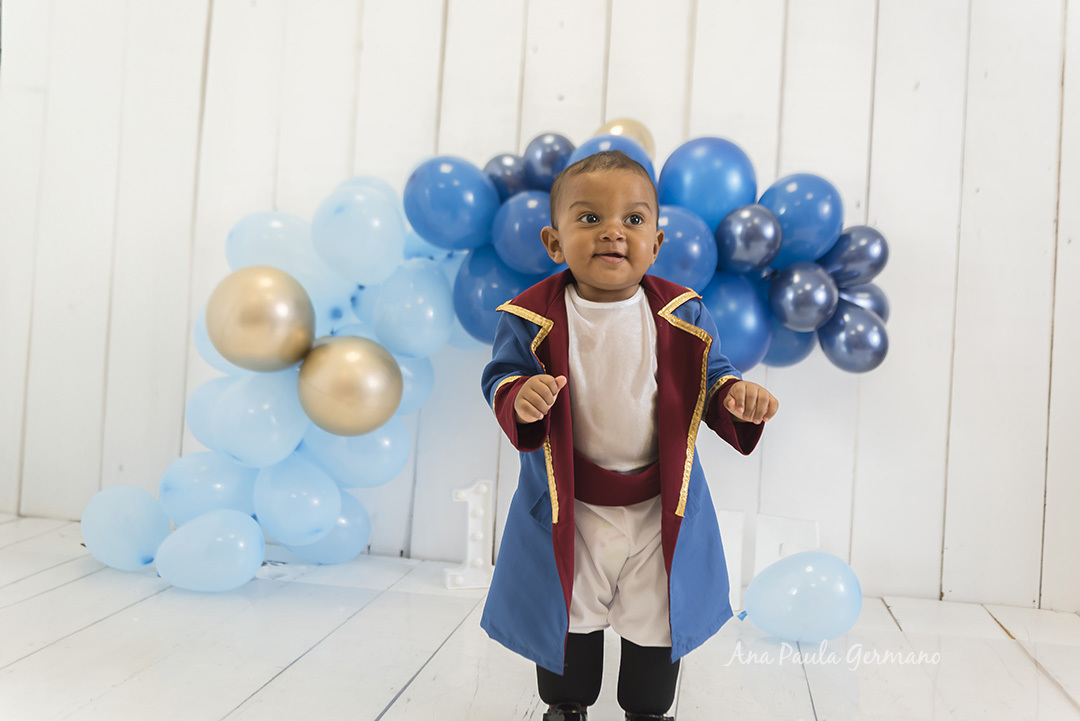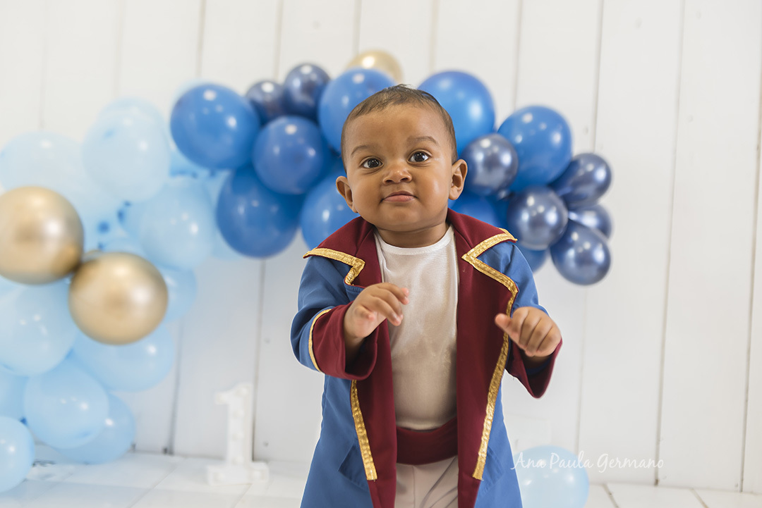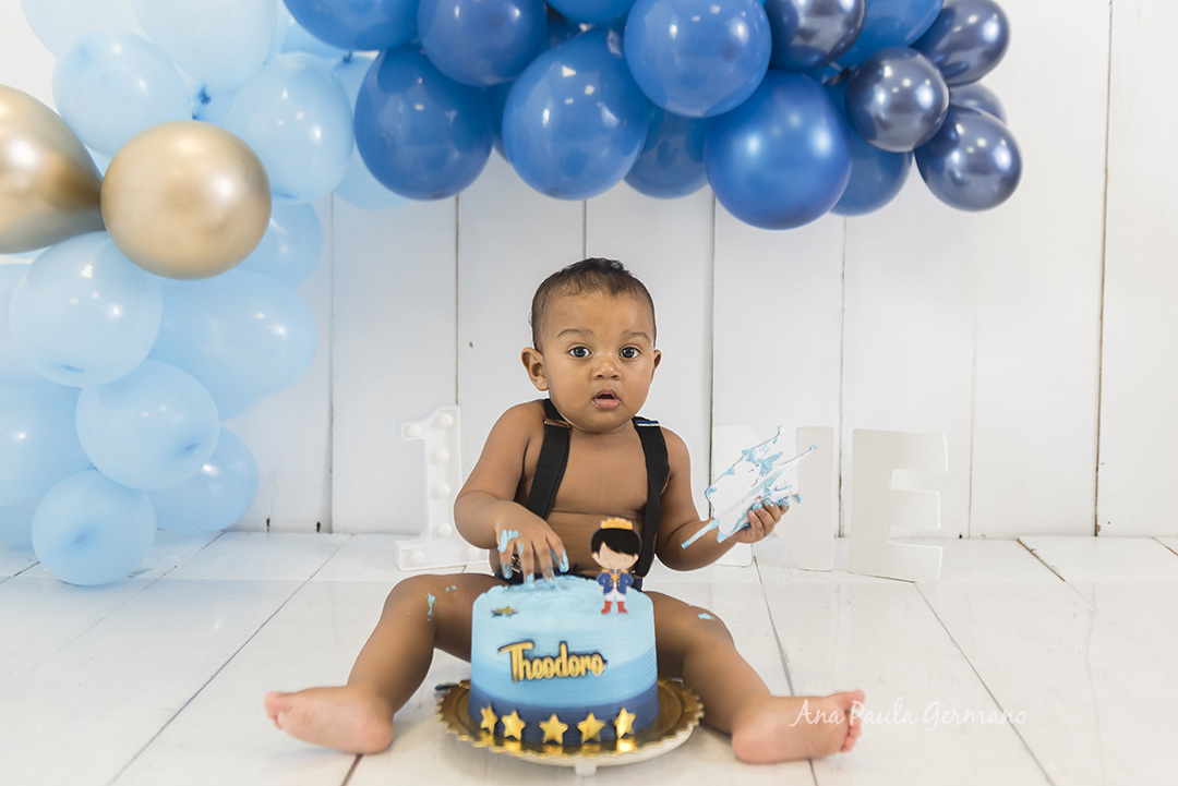 Agora estamos comemorando o seu primeiro ano de vida e o Smash the cake foi incrível e divertido. O tema foi Pequeno Príncipe e ele estava muito lindo, além de ter se divertido demais com o bolo!