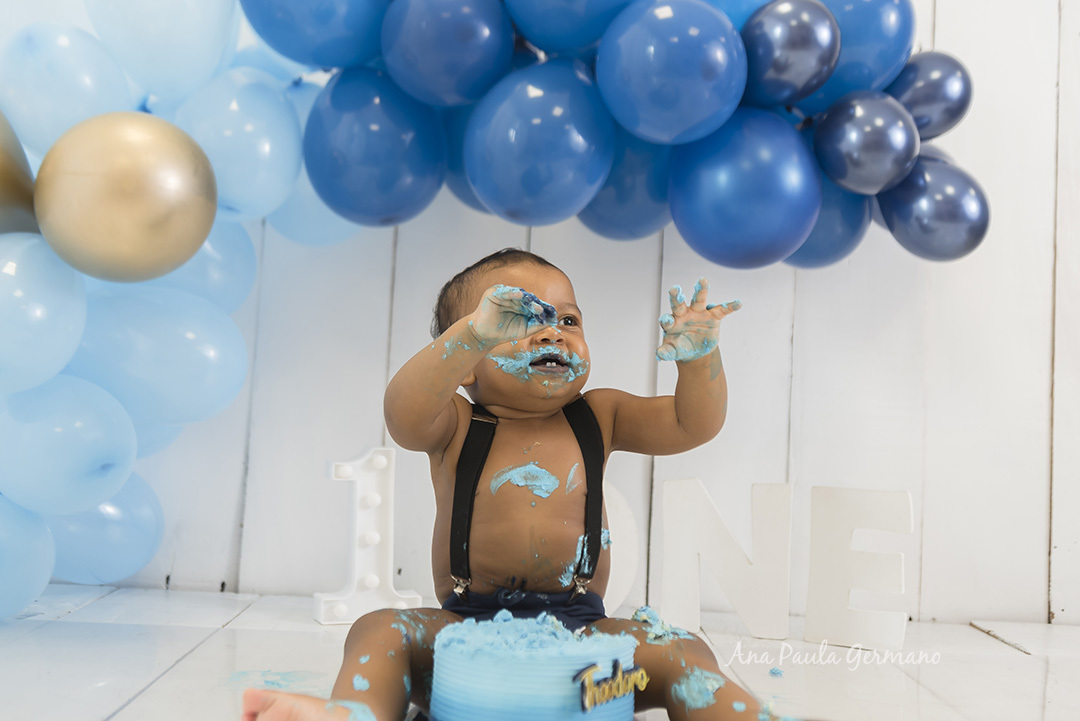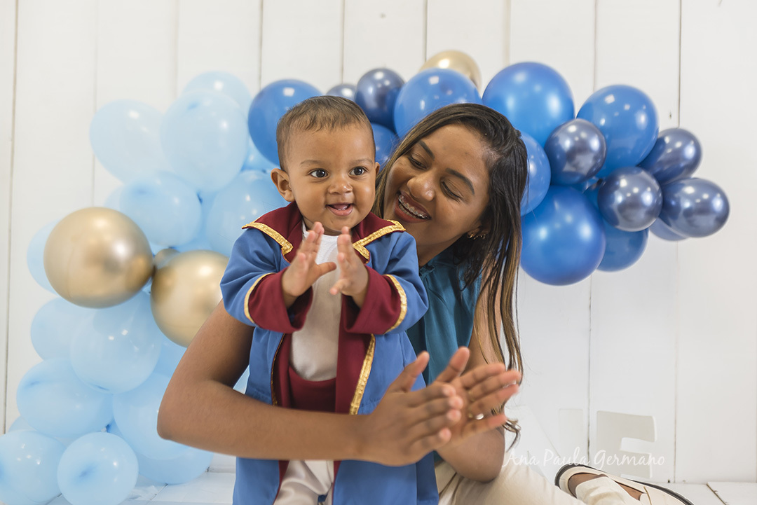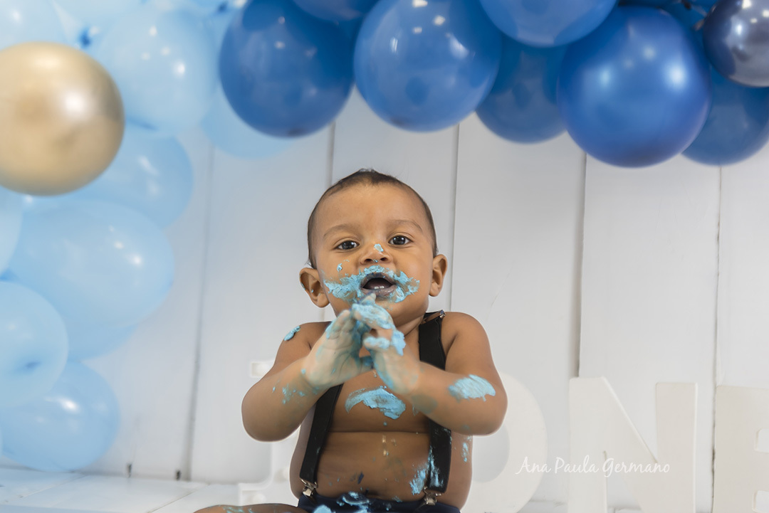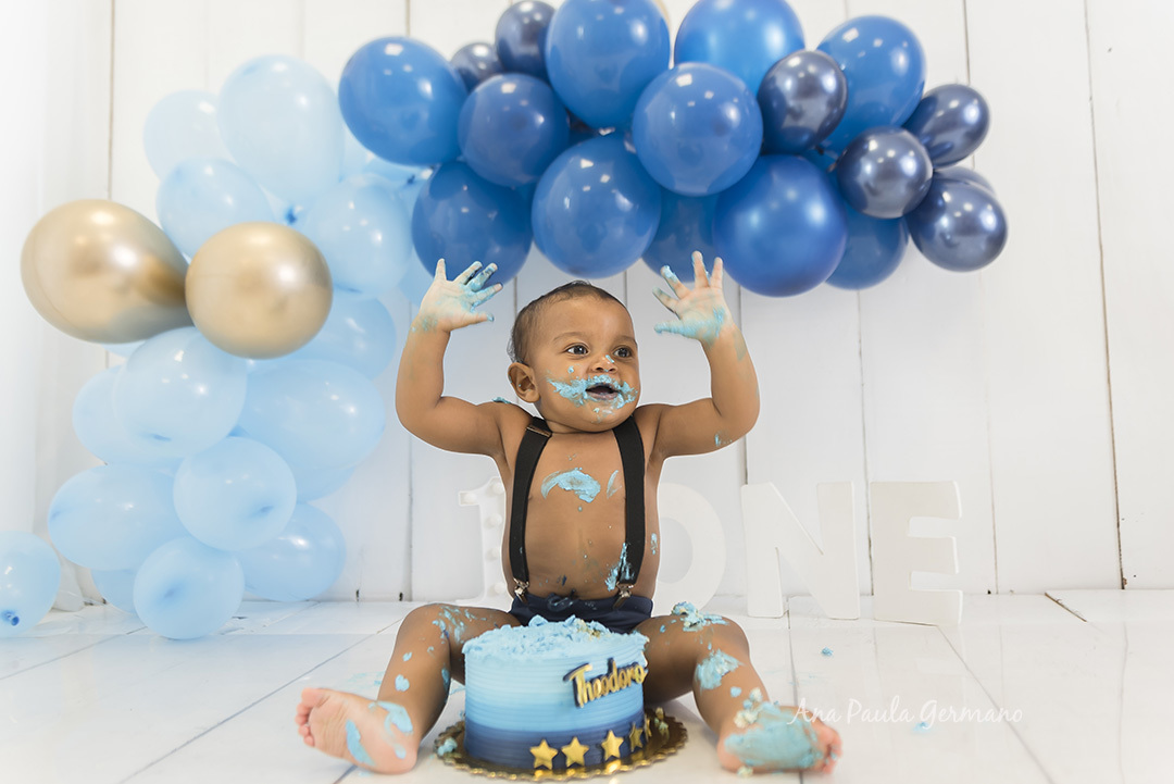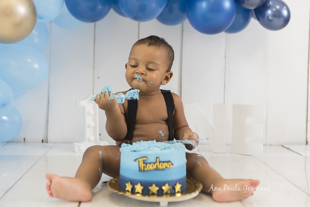 Agora estamos comemorando o seu primeiro ano de vida e o Smash the cake foi incrível e divertido. O tema foi Pequeno Príncipe e ele estava muito lindo, além de ter se divertido demais com o bolo!