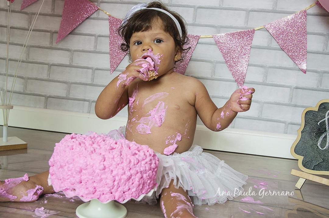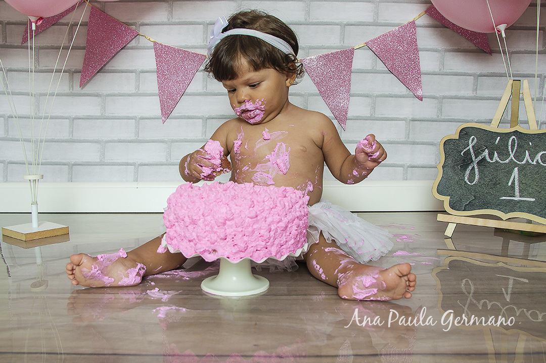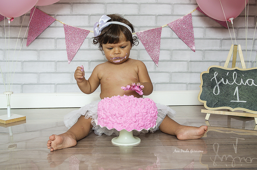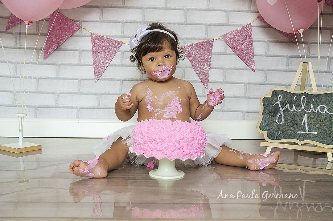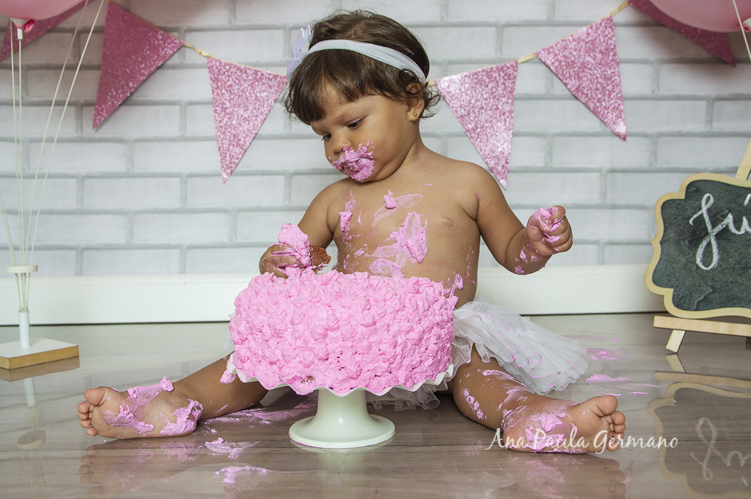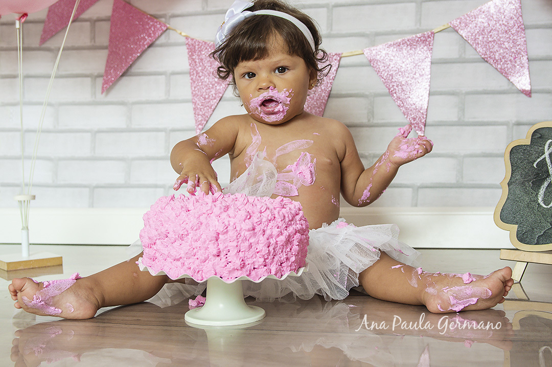 A Júlia "fez a festa" em seu ensaio Smash the Cake, em nosso Estúdio Fotográfico!