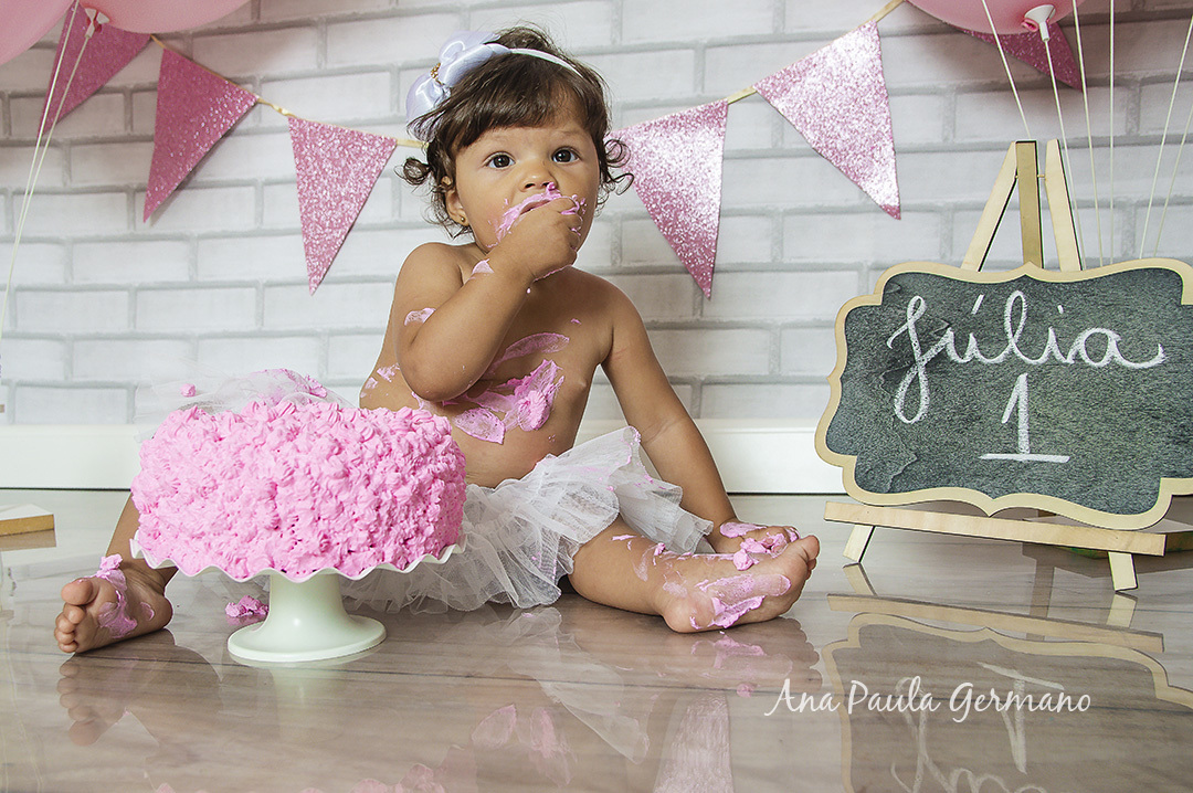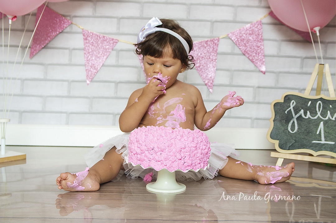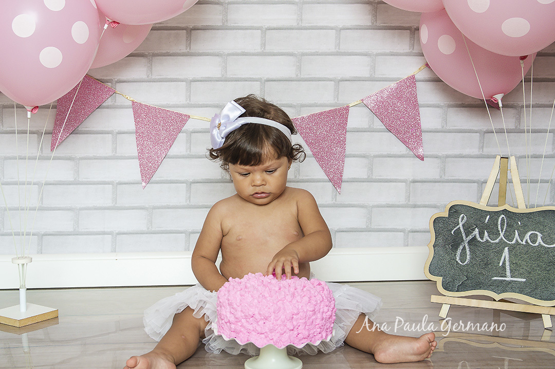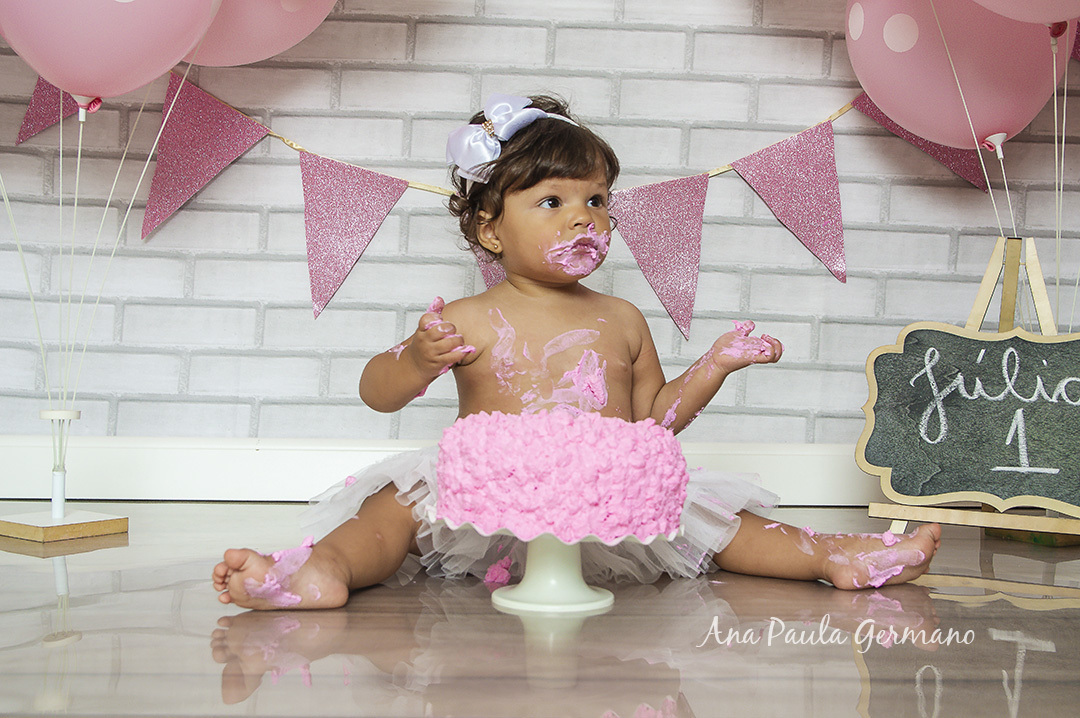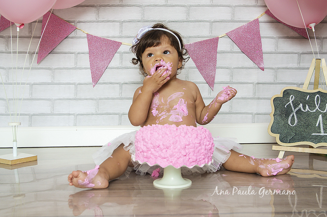 A Júlia "fez a festa" em seu ensaio Smash the Cake, em nosso Estúdio Fotográfico!