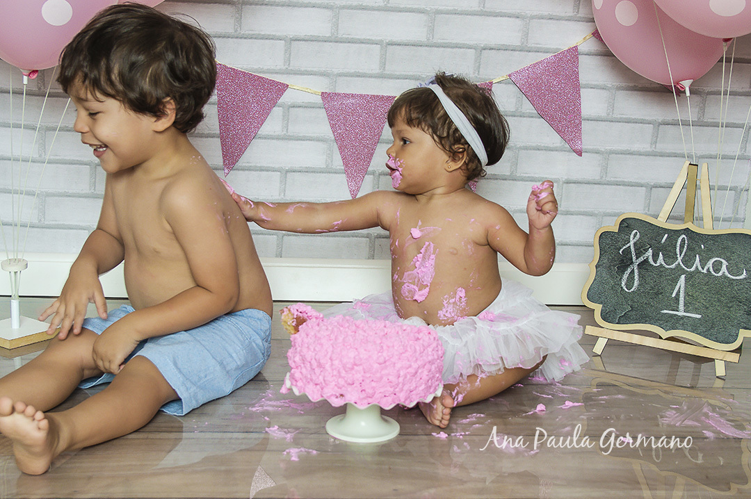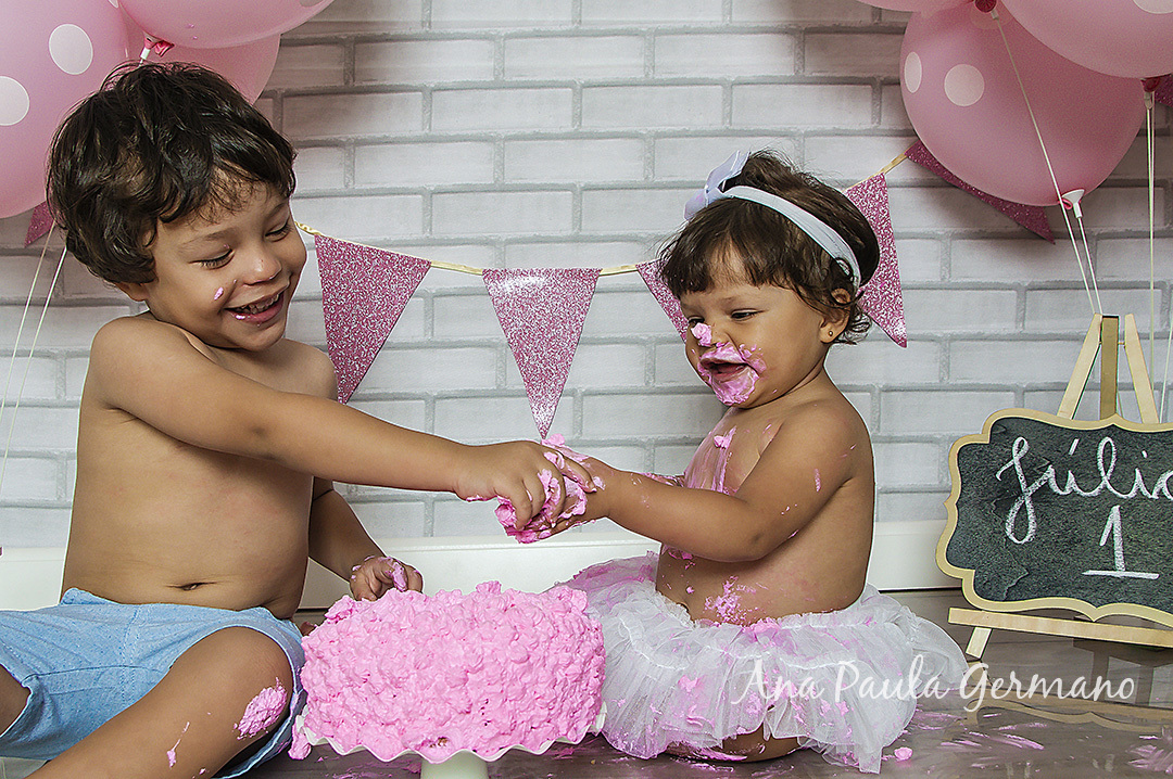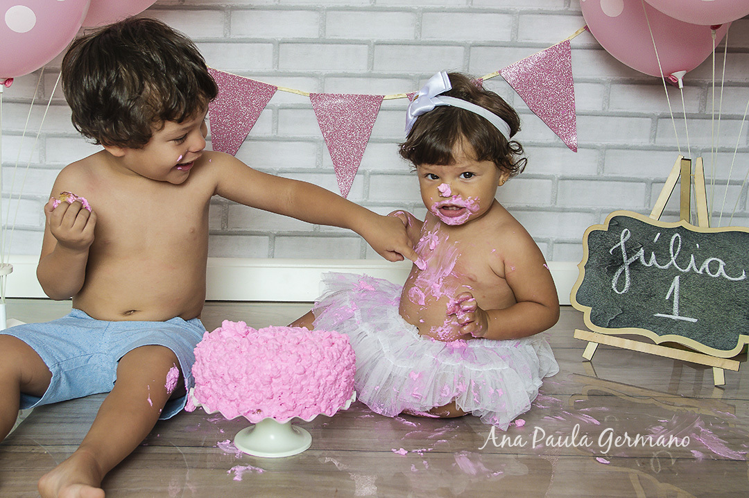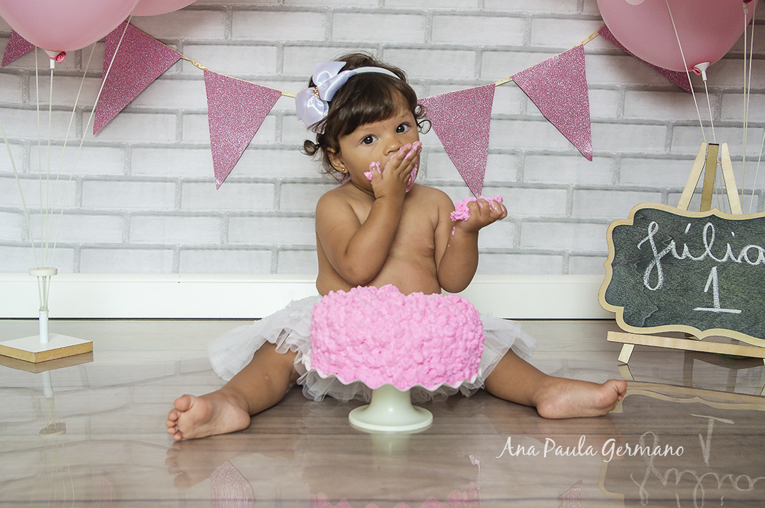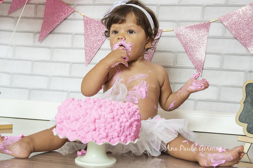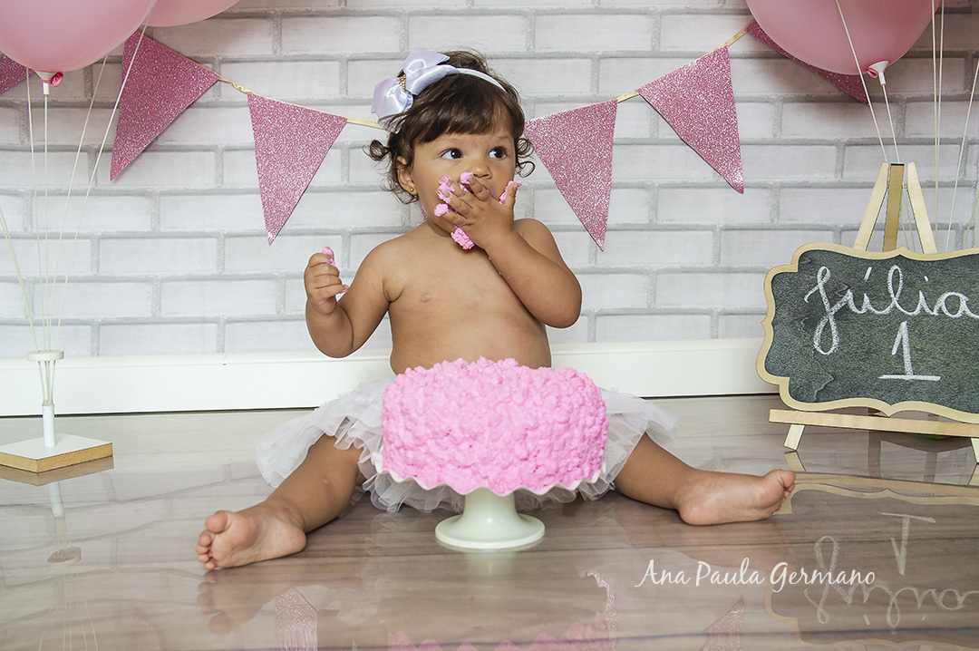 A Júlia "fez a festa" em seu ensaio Smash the Cake, em nosso Estúdio Fotográfico!